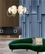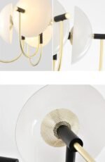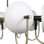The Ear Muff chandelier combines clean and sophisticated design with playful whimsy. white opal glass hemisphere shades float suspended by brass rods accented with black enamel accents providing soft glowing light creating an environment that is comfortable and flattering. It is the most loving modern chandelier to décor your living , Bedroom or Office.