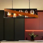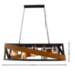 Bring warmth and character to your home with the Canyon Glow Modern Rustic Wood Chandelier. This charming linear chandelier features a durable black metal structure enhanced by a natural wood accent and multiple clear glass shades, evoking a cozy cabin feel. Perfect as a dining room chandelier or for illuminating your kitchen island, it casts a warm, inviting glow. This farmhouse bar light is an ideal blend of rugged appeal and stylish functionality.