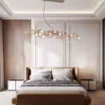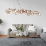 This chandelier is an exquisite piece of art that is sure to become the focal point of any room. From a distance, this hanging lamp already has a very distinctive appearance, but it is when you get up close that you can truly appreciate the beauty of its design. The hanging lamp is made from a combination of real stones and metal, creating a unique and artistic whole. This unique combination of stones and metal of materials gives the lamp a natural and organic feel, making it the perfect addition to any space that is looking to create a warm and inviting atmosphere. Whether you are looking to add a touch of elegance to your living room, bedroom, restaurants or looking for a statement piece for your office, this hanging lamp is sure to impress.