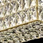 Crafted with the finest materials, the shining metal perfectly complements the sparkling crystal outer rim, creating a mesmerizing visual effect that captivates the senses. Even without the bulb being illuminated, this fitting adds a touch of glamour and elegance to any space. Available in both rectangle and circular choices, this light fixture is versatile and perfect for any occasion. This sophisticated halo light is the ideal addition to any luxurious lounge, creating an ambiance that is both glamorous and relaxing. It’s perfect for creating a statement piece in any room, whether it’s a living room, dining area, or bedroom.