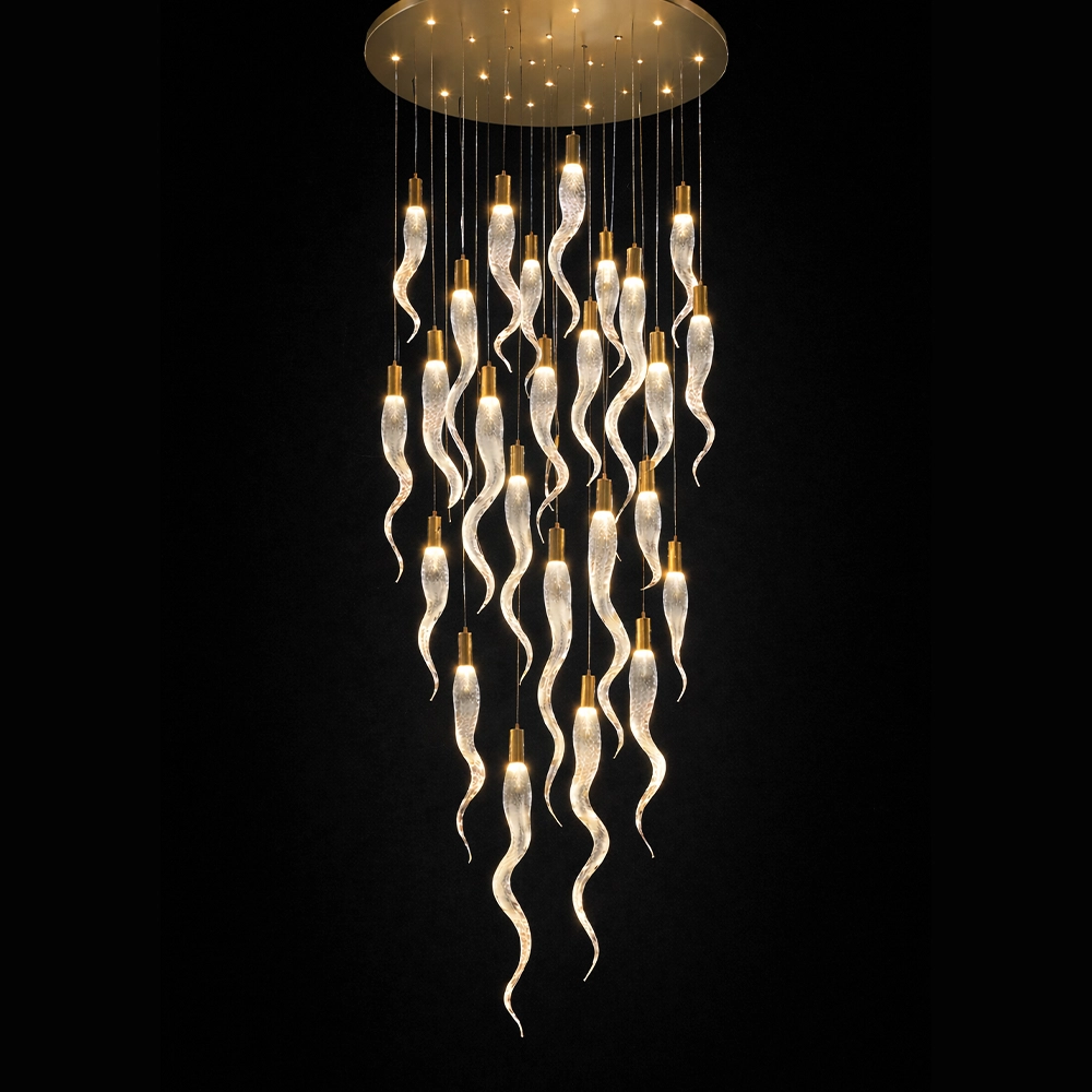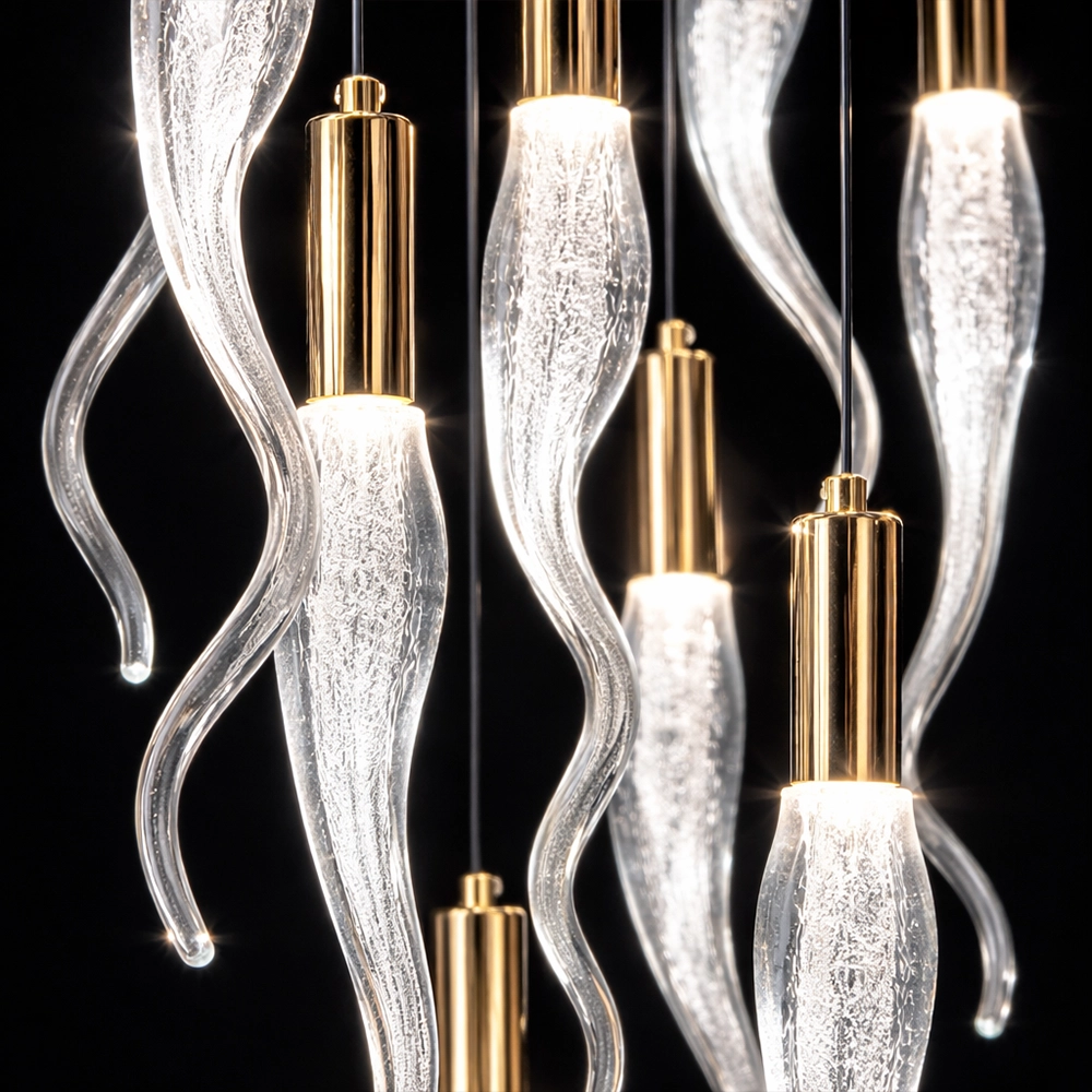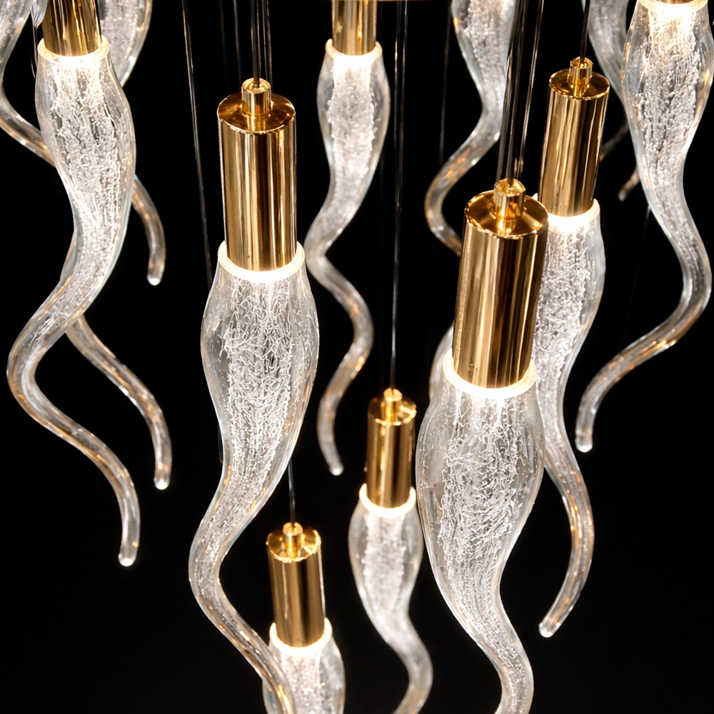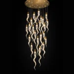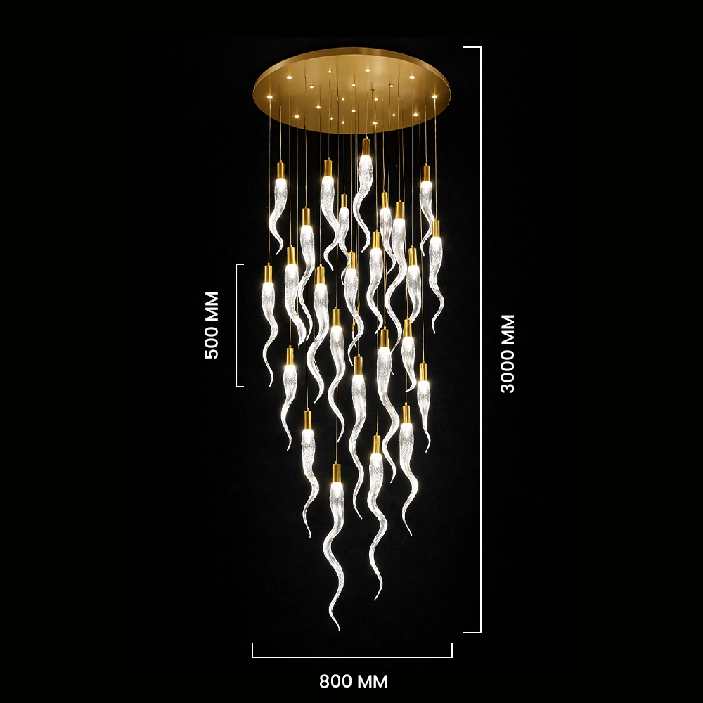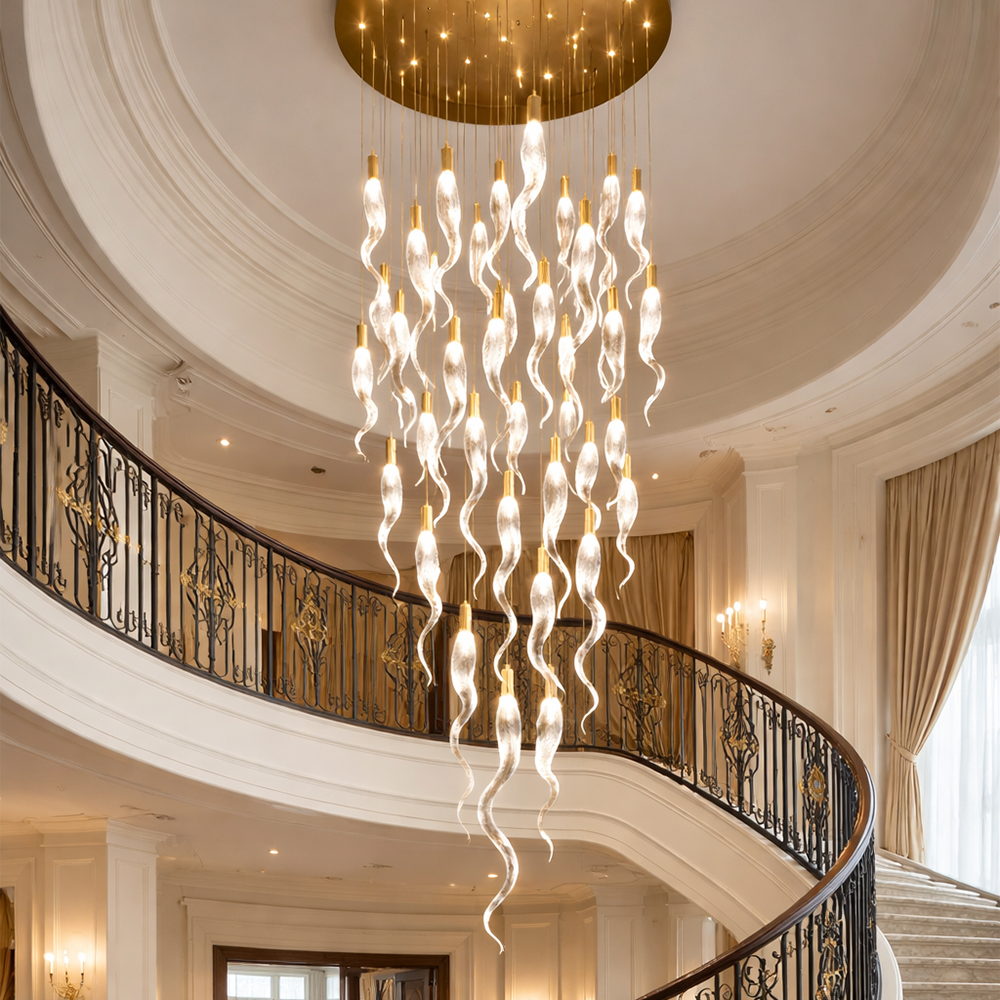 Make a bold statement with the Modern Spiral LED Cascade Chandelier, a striking lighting fixture designed with multiple flowing spiral LED elements suspended at varying heights. Perfect for staircases, high ceilings, and luxury interiors, this contemporary chandelier creates a dramatic cascading glow while adding artistic elegance and modern sophistication to any living space or grand entrance. ✨