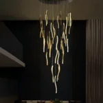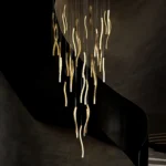 Elevate your space with the Modern Cascading Gold Wavy Chandelier. This stunning luxury LED chandelier features multiple wavy gold pendants cascading beautifully. Perfect as a grand staircase light, double-height entryway fixture, or modern living room statement piece, it delivers brilliant, ambient lighting and a unique contemporary design.