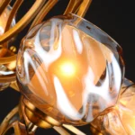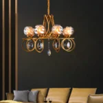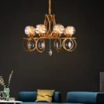 Unveil timeless elegance with the Regal Radiance Victorian Gold & Crystal Chandelier, a beautifully crafted lighting solution inspired by classic design with a contemporary sparkle. This distinguished fixture boasts a rich, antique gold or bronze finish on its sturdy metal frame, intricately designed with flowing curves and an open, airy structure. Six (or more) prominent clear, textured glass globes (or cup-like shapes) provide a soft, diffused light, creating an inviting ambiance. Beneath each light source, a brilliant faceted crystal drop shimmers, adding a touch of opulence and glamour. Ideal for illuminating grand dining halls, creating a welcoming glow in spacious foyers, or serving as a luxurious centerpiece in a formal living room. This traditional gold and crystal chandelier is built to stand the test of time, offering both striking visual appeal and reliable illumination. Its versatile design seamlessly integrates into various interior styles, from classic Victorian to elegant transitional spaces. Bring a touch of regal heritage and sophisticated charm to your home with this stunning and functional lighting masterpiece.
