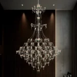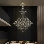 Adorn your space with the Starlight Modern Tiered Crystal Chandelier, a breathtaking centerpiece that captures light and attention. This multi-tiered fixture features a cascade of interwoven metalwork adorned with brilliant emerald-cut crystals. A striking blend of modern design and timeless elegance, this luxury chandelier is perfect for adding sophisticated glamour to dining rooms, grand foyers, or master bedrooms. Its captivating design creates a stunning light display, transforming any room into a dazzling spectacle. Elevate your interior with this designer light fixture.