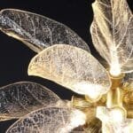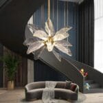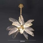 Imagine a gentle bloom frozen in time, suspended in midair, its delicate petals radiating a soft, warm glow. This artistic chandelier is a symphony of resin and iron, its clear flower design adorned with 18 vivid leaves. Each leaf, beautifully crafted with intricate veins, holds a single bulb, casting a gentle, diffused light that bathes the room in an elegant and graceful ambience. Perfect for modern living rooms, hallways, or entry ways, this chandelier is more than just a light fixture; it’s a work of art that transforms any space into a haven of beauty and tranquility.