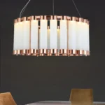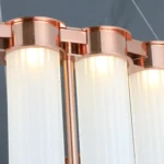 Whispered Flow is a statement chandelier that blends modern sophistication with timeless allure. Designed with cylindrical frosted glass tubes and a lustrous metal frame, this masterpiece radiates a soft, inviting glow. Perfect for lavish dining areas, grand foyers, and luxury living spaces, it transforms any setting into an exquisite retreat of warmth and elegance. Elevate your décor with this premium lighting fixture that embodies opulence and brilliance.