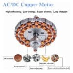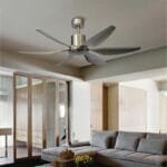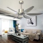 Dove Silver- The aerodynamic 6 blade fan is constructed from a steel body with abs blades. A design that will fit in a range of interior styles. This Ceiling Fan features a thoroughly modern aesthetic with its stunning streamlined design and expansive diameter. This ceiling fan comes in a brushed nickel finish with 6 ABS blades.