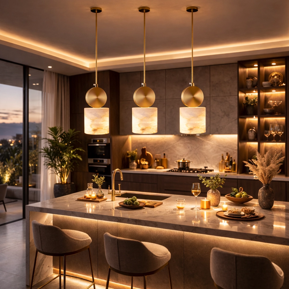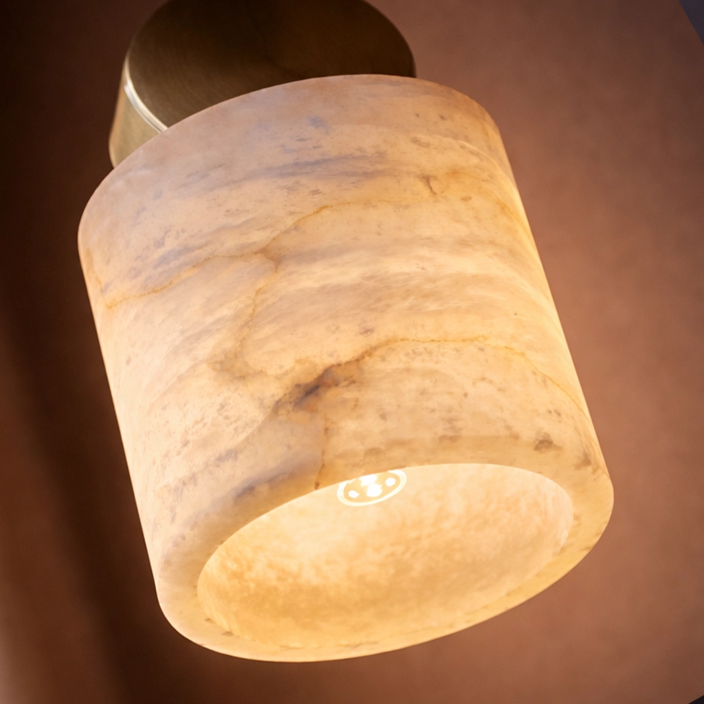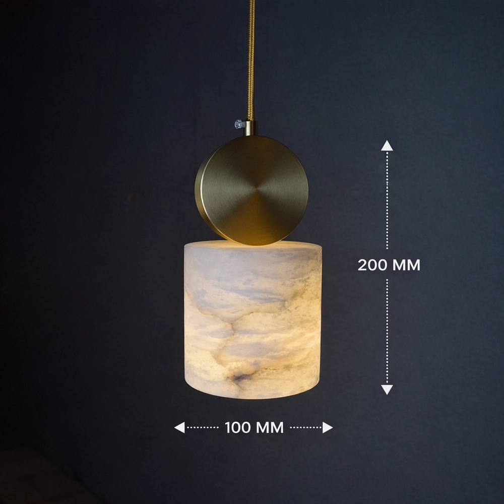 The Aurelia Marble Cylinder Pendant Light brings timeless elegance and modern sophistication together through its refined combination of natural marble and brushed brass detailing. Featuring a smooth cylindrical marble shade with subtle organic veining, this pendant emits a warm, diffused glow that enhances the ambiance of any interior space.
