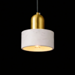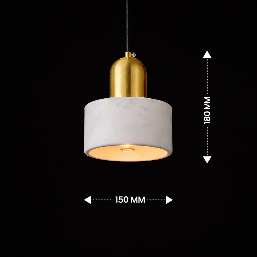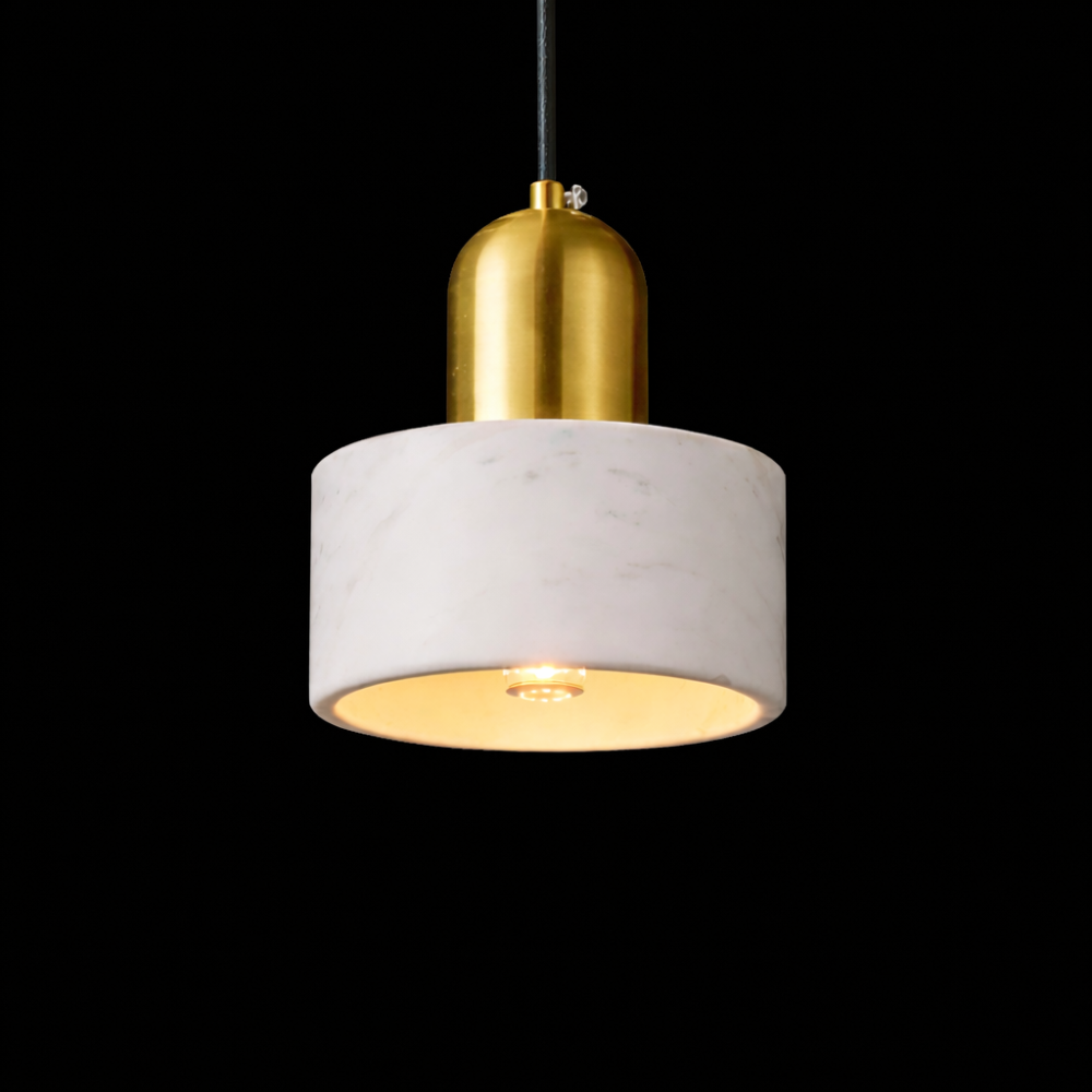 Aurevia Marble Dome is a contemporary pendant light featuring a solid white marble band paired with a smooth brushed brass dome. The natural stone texture contrasts elegantly with the warm metallic finish, casting a focused downward glow. Ideal for kitchen islands, dining tables, and modern interiors that celebrate refined material combinations.