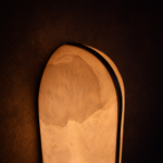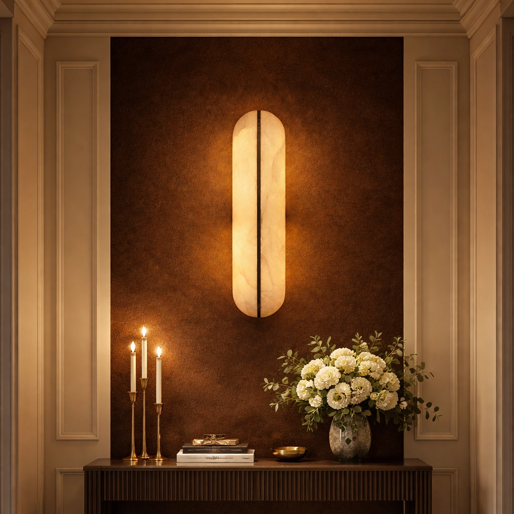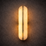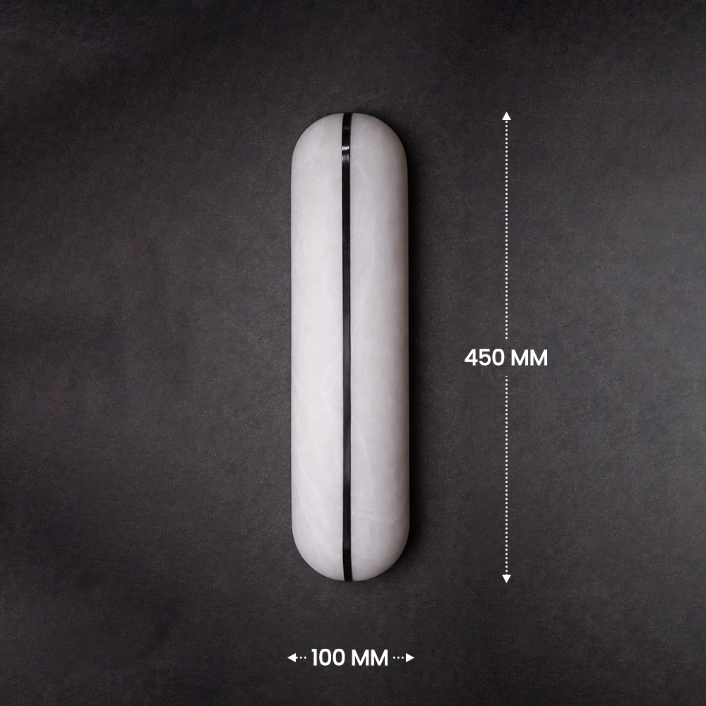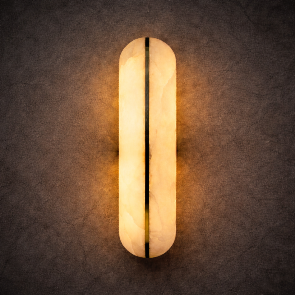 The Aurora Split Marble Wall Sconce is a striking modern lighting fixture that showcases the natural beauty of marble through a refined architectural design. Crafted with an elongated capsule-shaped marble diffuser, the fixture is divided by a sleek vertical brass accent that creates a dramatic visual contrast while enhancing its contemporary silhouette.