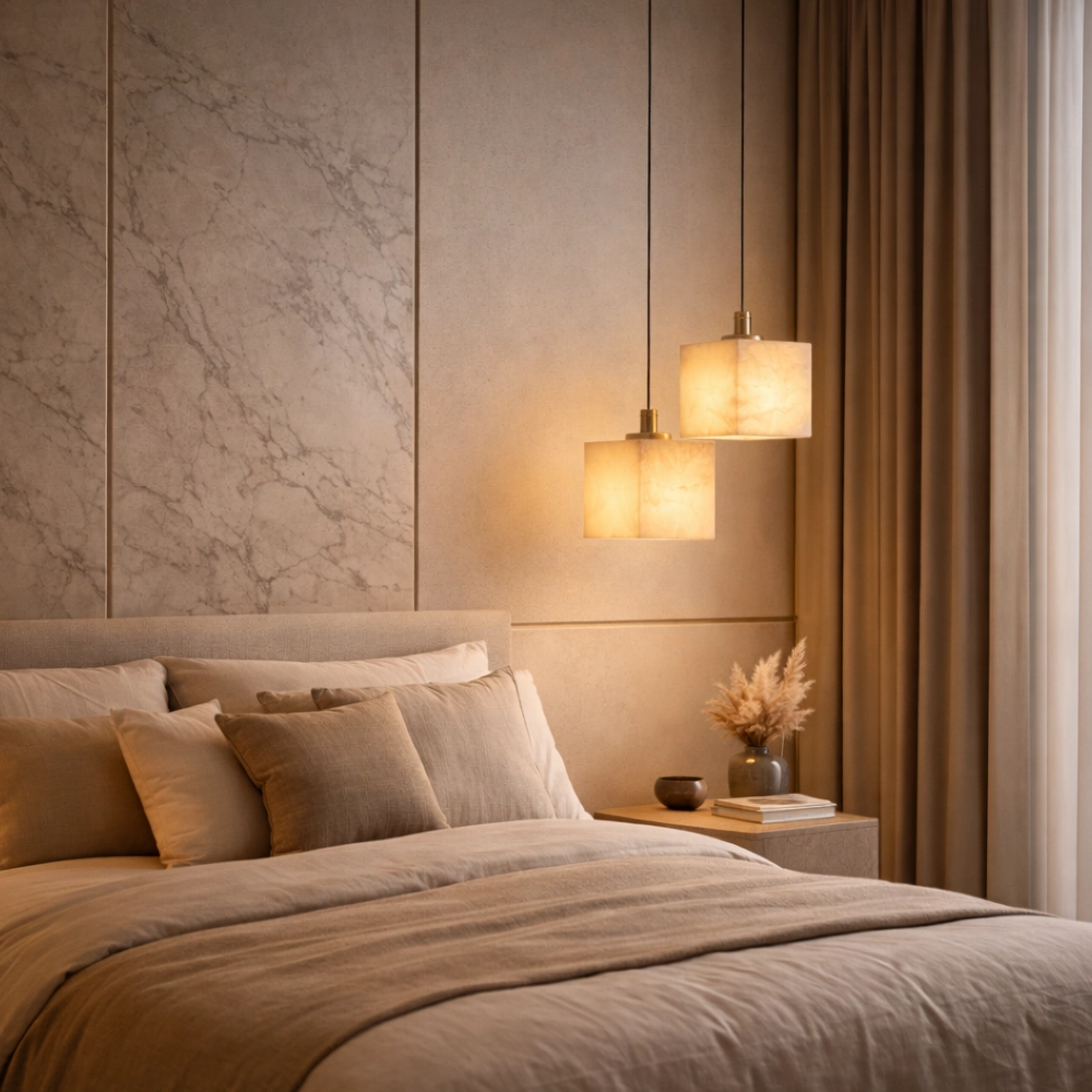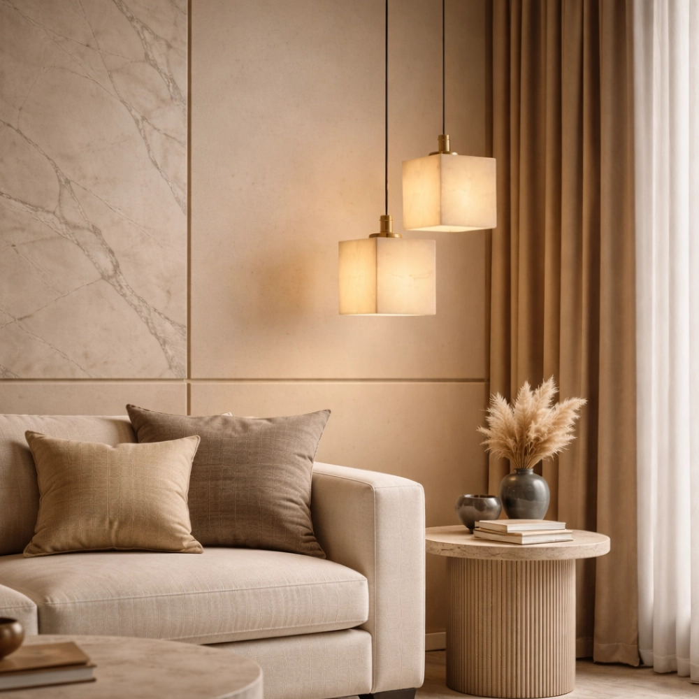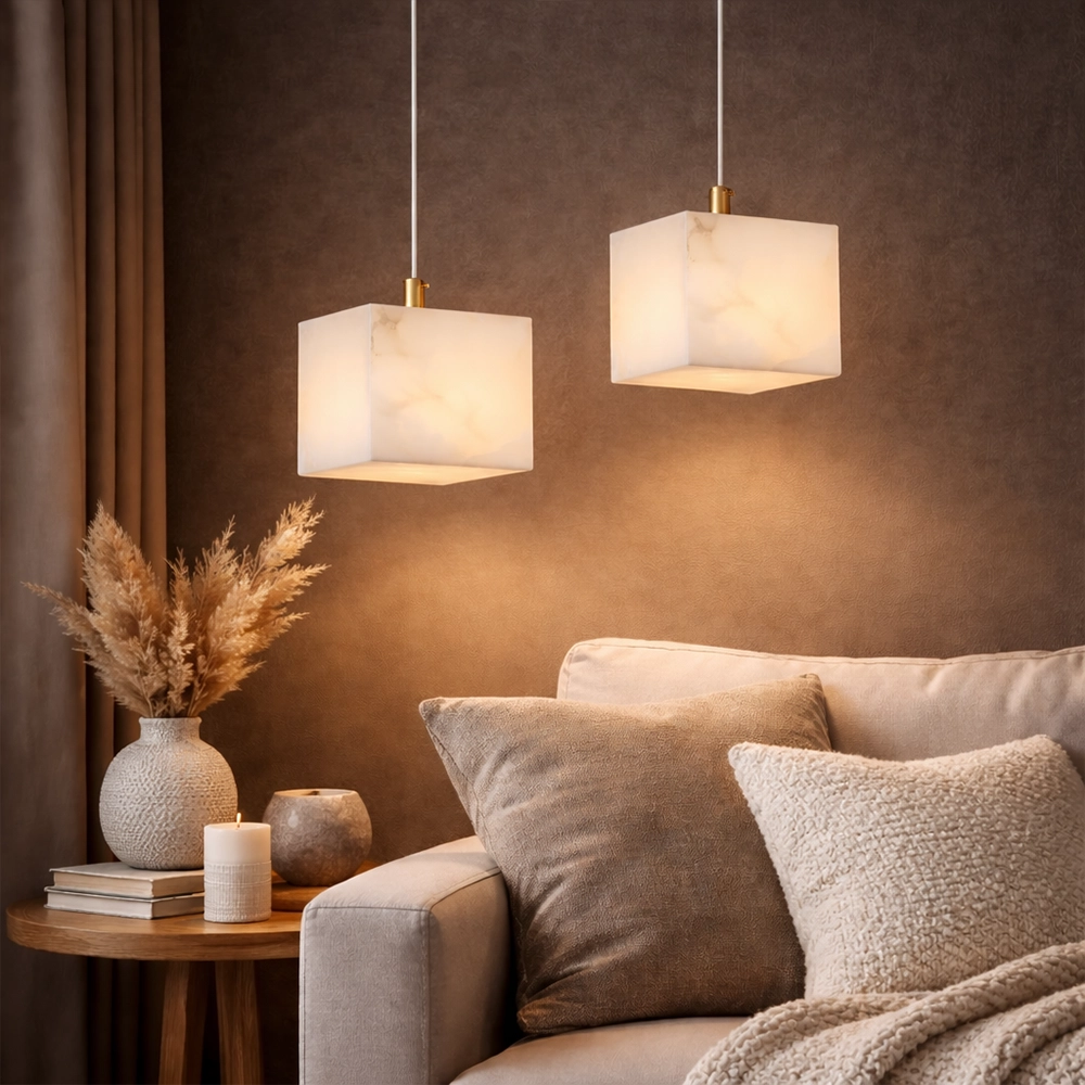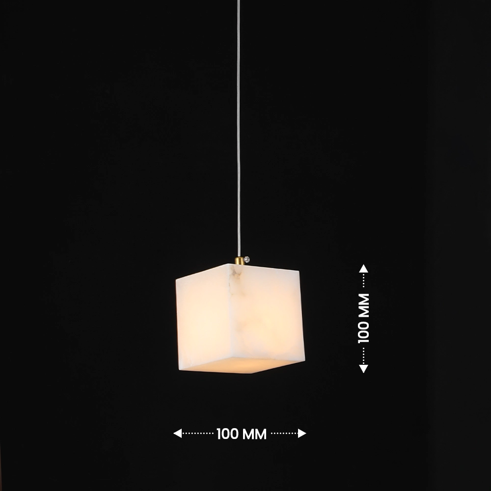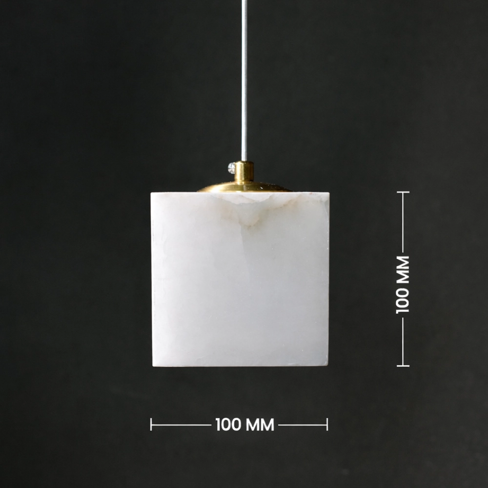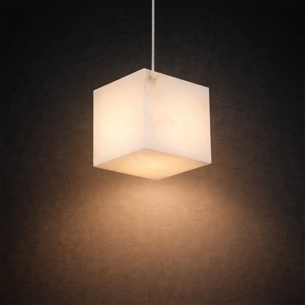 Caldera Marble Cube is a modern pendant light crafted in a solid cube form with subtle natural veining. The clean geometric silhouette diffuses a soft, even glow, making it ideal for kitchen islands, bedside drops, and contemporary interiors that embrace minimal architecture with material depth.