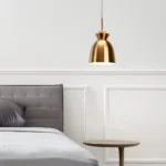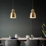 Introduce a touch of timeless elegance with the Contour Wood C Gold Pendant Light, a sophisticated lighting fixture designed to elevate any modern or classic interior. This captivating hanging light features a graceful bell-shaped shade crafted from premium brass or polished gold-finished metal, radiating a warm, inviting glow. Its sleek, minimalist silhouette is accentuated by a refined, subtly flared design towards the base, ensuring broad and focused illumination downwards. Suspended by a slender black cord and matching canopy, it seamlessly integrates into various decor styles. Perfect for illuminating kitchen islands, bedside tables for a luxurious touch, creating inviting ambiance in dining nooks, or adding a chic focal point to a contemporary living area. This gold bell pendant light offers brilliant, direct lighting ideal for both task functions and creating a cozy atmosphere. Crafted with durable materials and a lustrous finish, the Contour Wood C Gold Pendant Light is a versatile choice for homeowners seeking a high-quality, design-forward lighting solution that effortlessly complements mid-century modern, transitional, art deco, and luxury contemporary spaces.