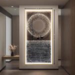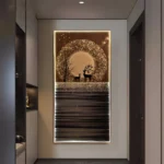 Bring a magical glow to your home with this captivating wall art featuring two serene deer beneath a breathtaking luminous ring. The upper section depicts a subtle forest scene with a tree and shimmering light, while the lower part offers a striking contrast with its textured, deep tones reminiscent of a starry night or shimmering water. Framed elegantly, this piece creates a dreamlike atmosphere, making it a perfect focal point for living rooms, dining areas, or sophisticated bedrooms. It’s an enchanting way to add contemporary elegance and a serene natural touch to your decor.