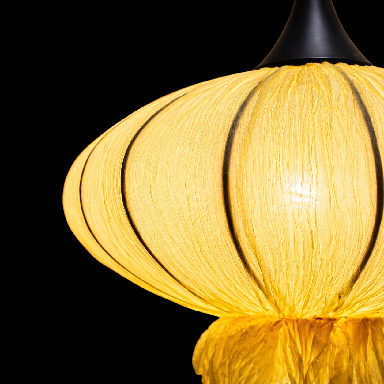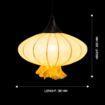 The HaloPetal pendant light features an airy, ribbon-like fabric shade that curves outward to form an open, petal-inspired silhouette, creating a soft halo of light around the fixture. Its warm glow and sculptural form make it perfect above dining tables, kitchen islands, or living room seating where statement lighting is needed without feeling heavy. The slim black suspension and minimal ceiling plate keep the focus on the flowing shade, blending easily with contemporary, Scandinavian, and Japandi interiors.