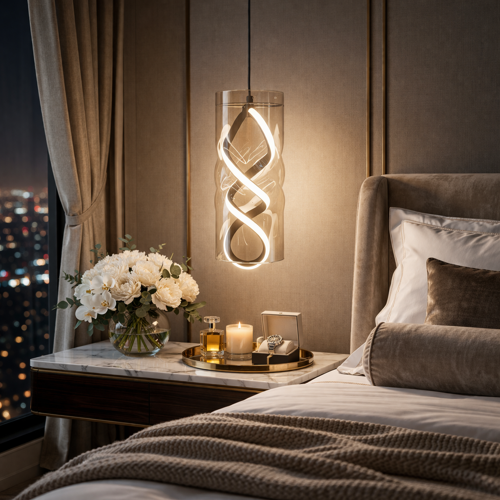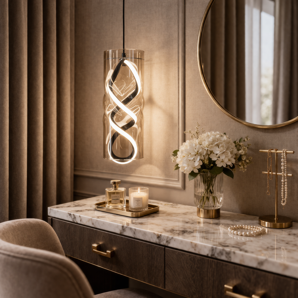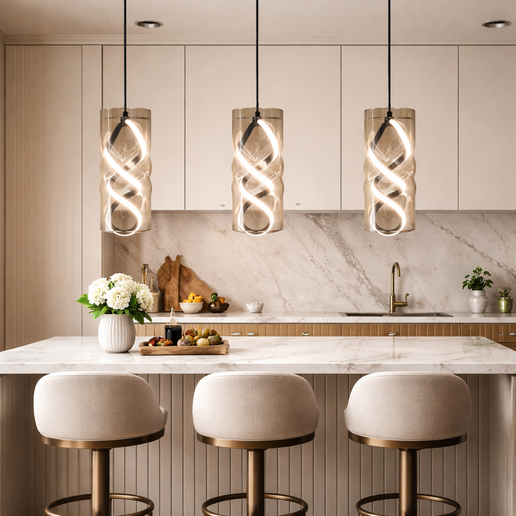 Elevate your interior with the Helix Glow LED Pendant Light, a modern spiral design enclosed in elegant glass. This contemporary hanging lamp delivers warm ambient lighting, perfect for living rooms, dining areas, and stylish interiors. Energy-efficient LED technology and a sleek pendant silhouette make it an ideal choice for modern home décor and luxury lighting setups. ✨