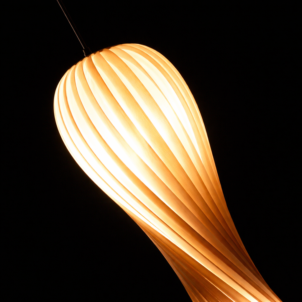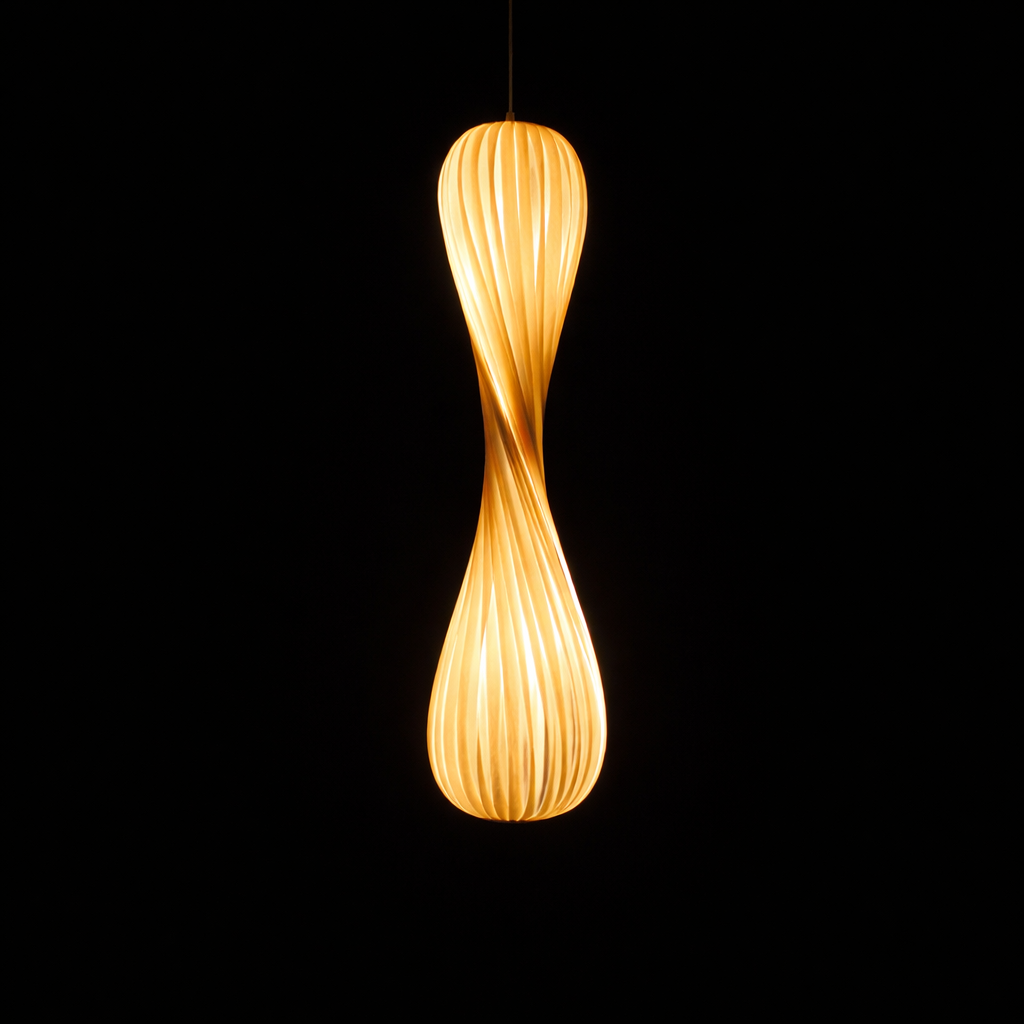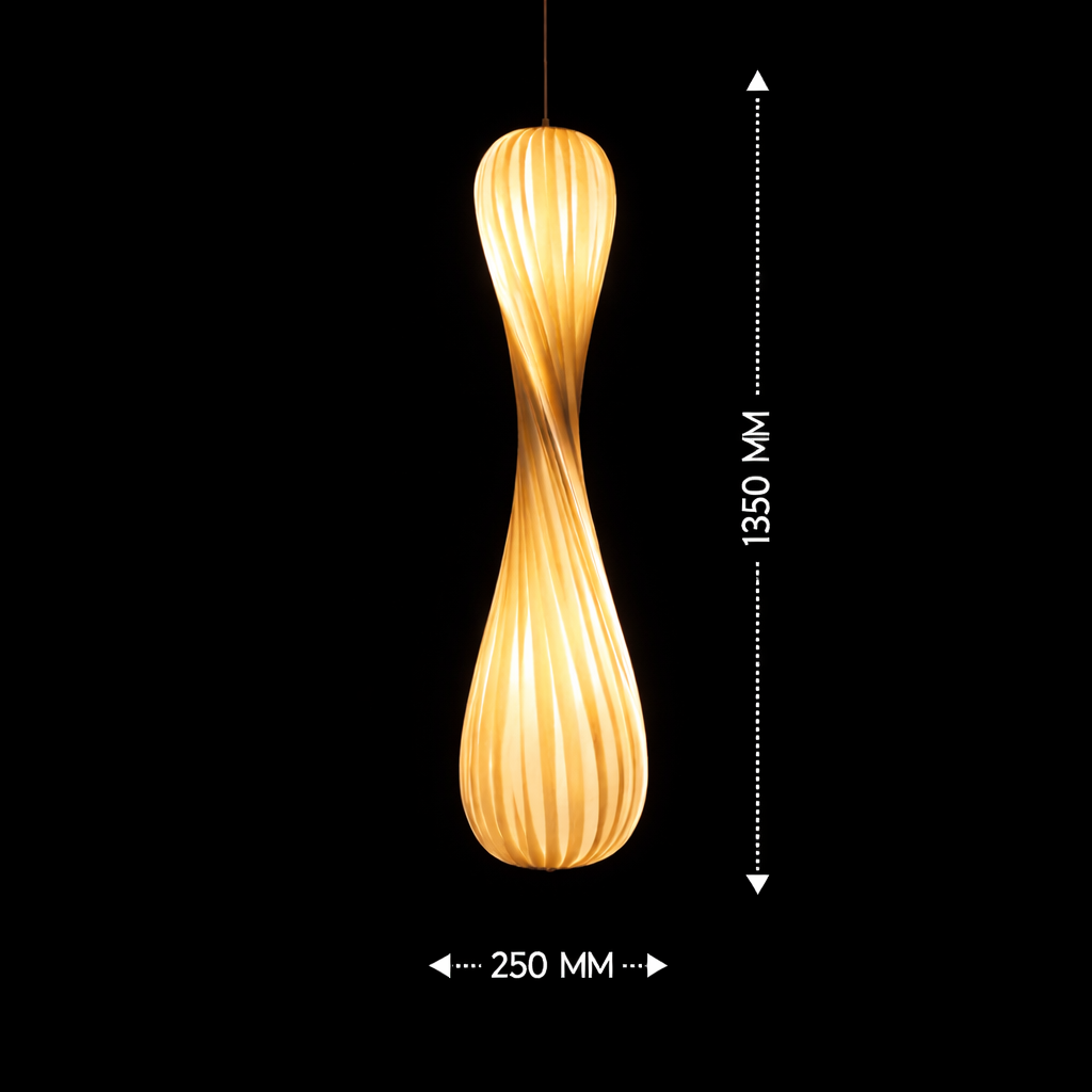 Helix Glow is a statement pendant light featuring a fluid, twisted silhouette that gently diffuses warm light through its ribbed form. The seamless spiral design creates a sense of motion and elegance, making it ideal for double-height spaces, stairwells, and contemporary interiors where lighting becomes a visual centerpiece.