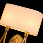 Dual oval linen drums perch on looping gold arms woven around a textured honeycomb backplate, diffusing light like nectar dripping from an ancient beehive loom. This artisanal glow anchors powder room vanities, library ladders, and tapas gallery walls where rustic alchemy brews intimate radiance.