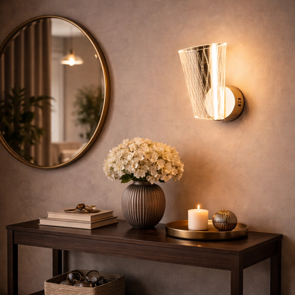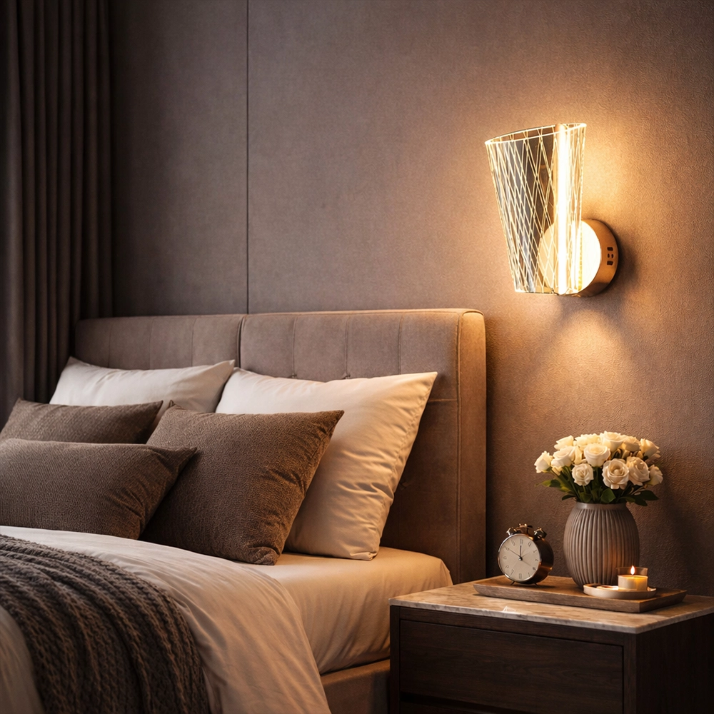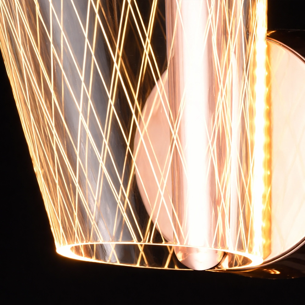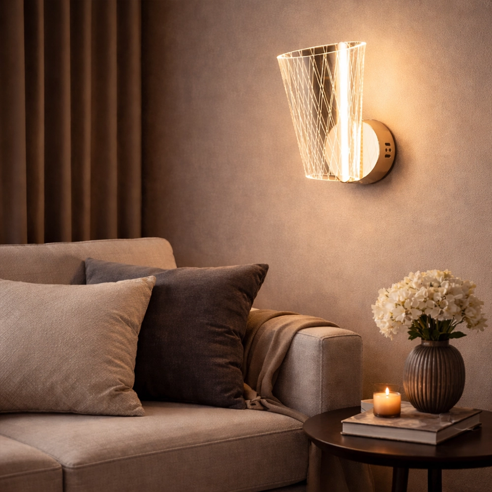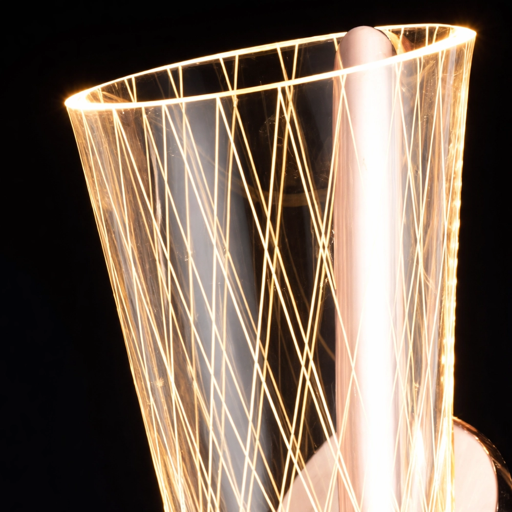 The Luminet Geometric LED Wall Sconce is a contemporary lighting piece that merges architectural design with modern LED illumination. Featuring a sculptural cone-shaped metal frame woven with fine geometric lines, this wall light surrounds a sleek vertical LED tube that emits a warm, radiant glow.