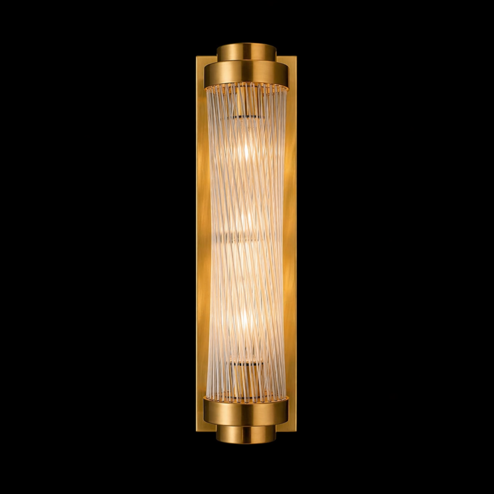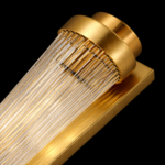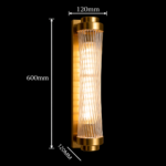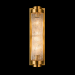 This modern wall light features a slim brass body with a tall ribbed glass shade that diffuses light softly while adding vertical elegance to any wall. The up-and-down glow makes it perfect for bedroom sides, mirror lighting, hallways, and living rooms where a sleek, hotel-style ambience is desired.