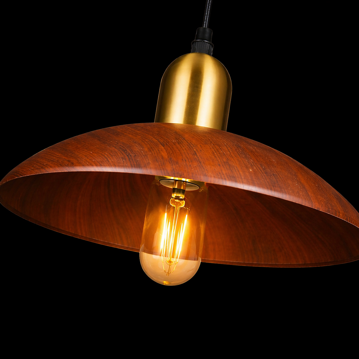 The NordicWood Dome Pendant Light combines a warm wood-finish shade with a sleek brass holder to create a cozy yet modern focal point over dining tables and kitchen islands. The wide dome throws light evenly downward, highlighting food counters, café seating, or study desks while keeping the ambience soft and inviting. Its compact size and black ceiling plate make it easy to cluster multiple pieces in bars, restaurants, or living rooms for a stylish layered lighting effect.