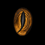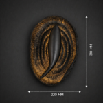 A spiraling obsidian blade pierces a rugged bronze rim, igniting radial fissures with molten veins like a cosmic black hole devouring stellar fire. This primal vortex mounts as a sentinel over forge-lit dens, subterranean vaults, and warrior sanctums where shadowed flames spiral eternal hunger.