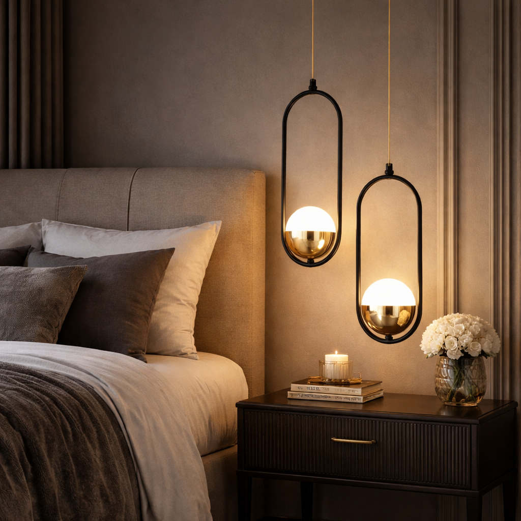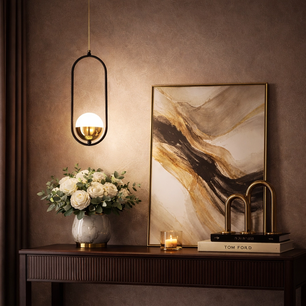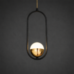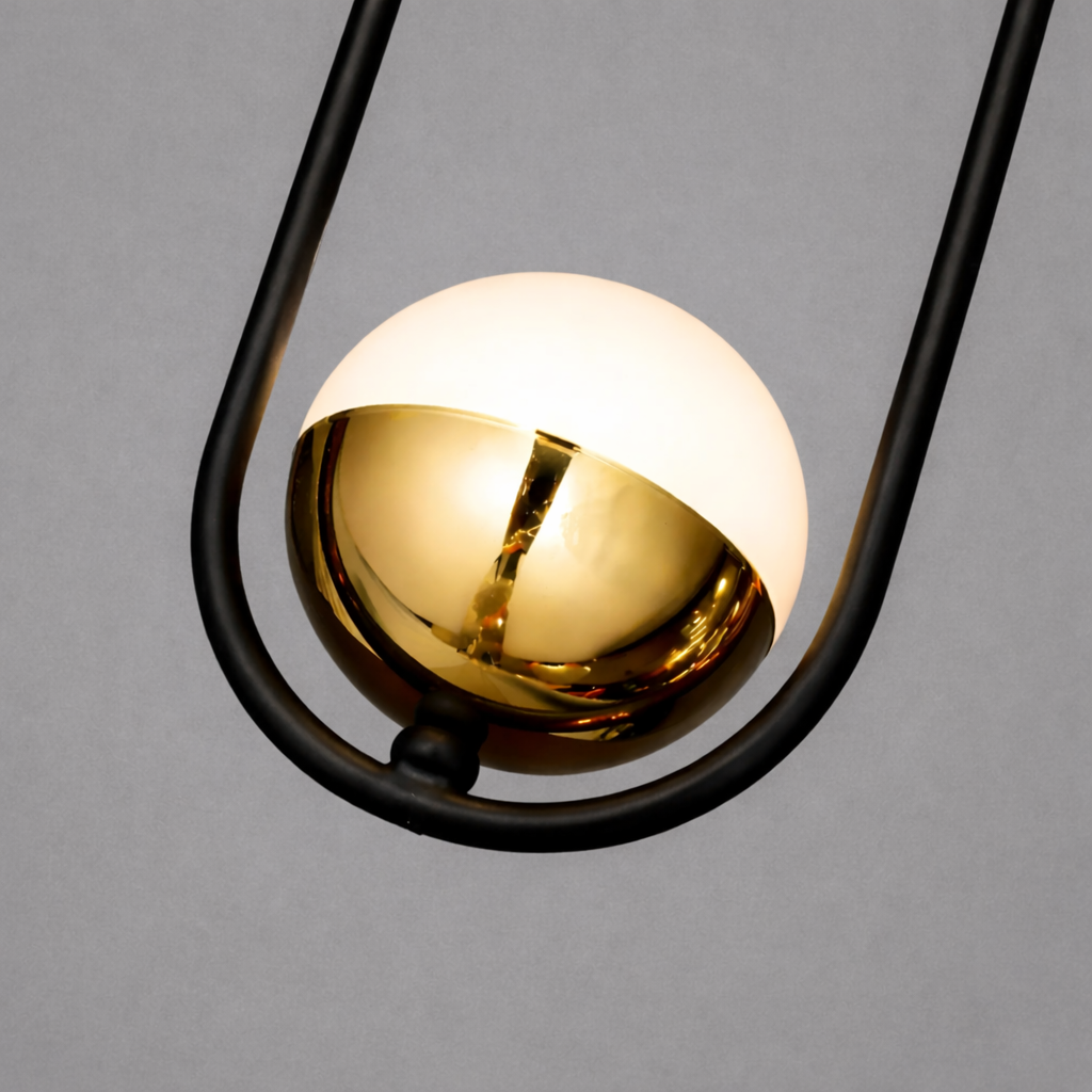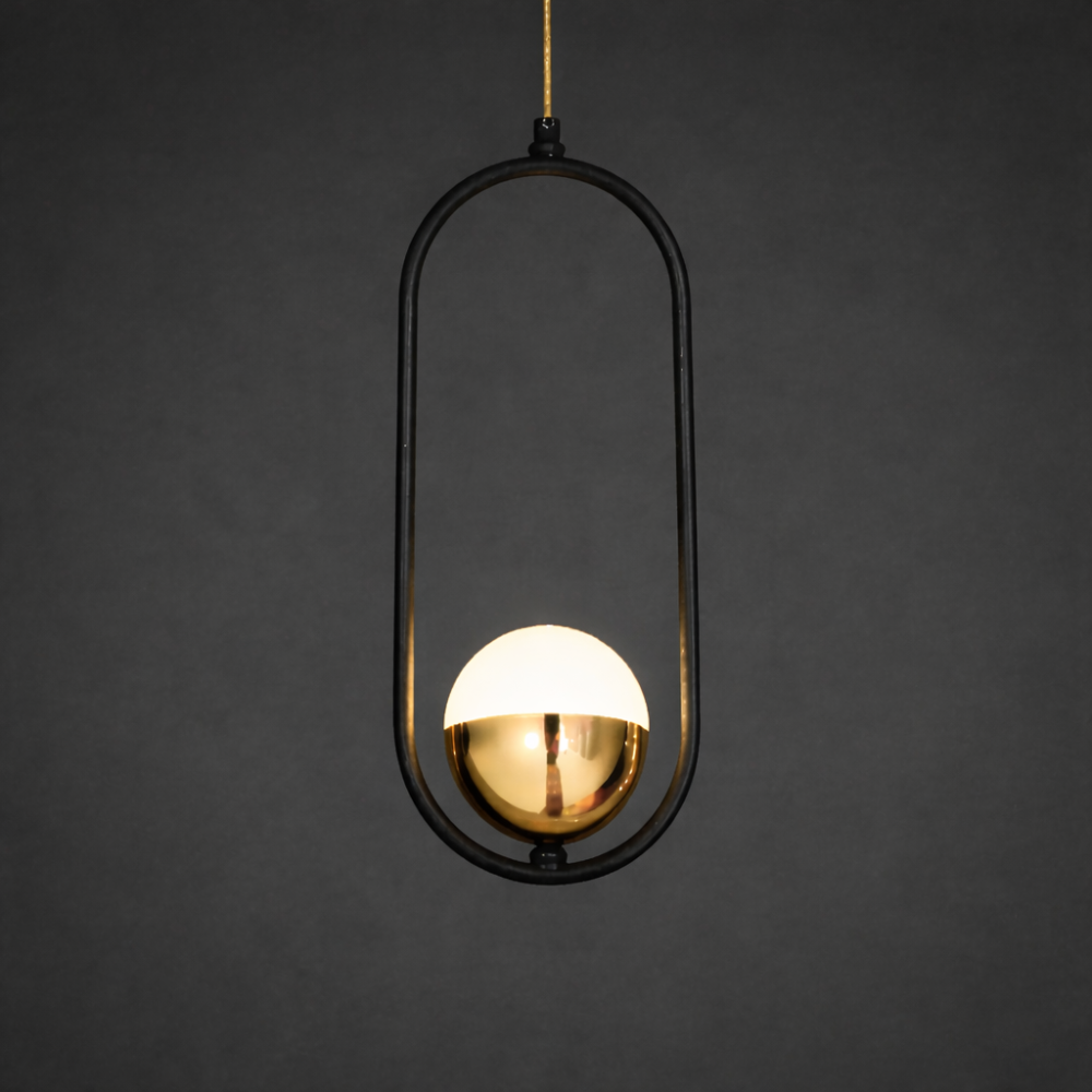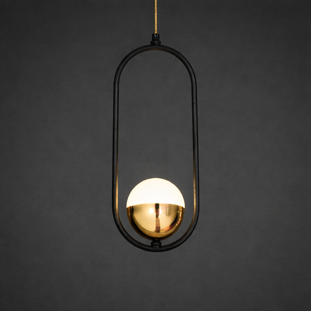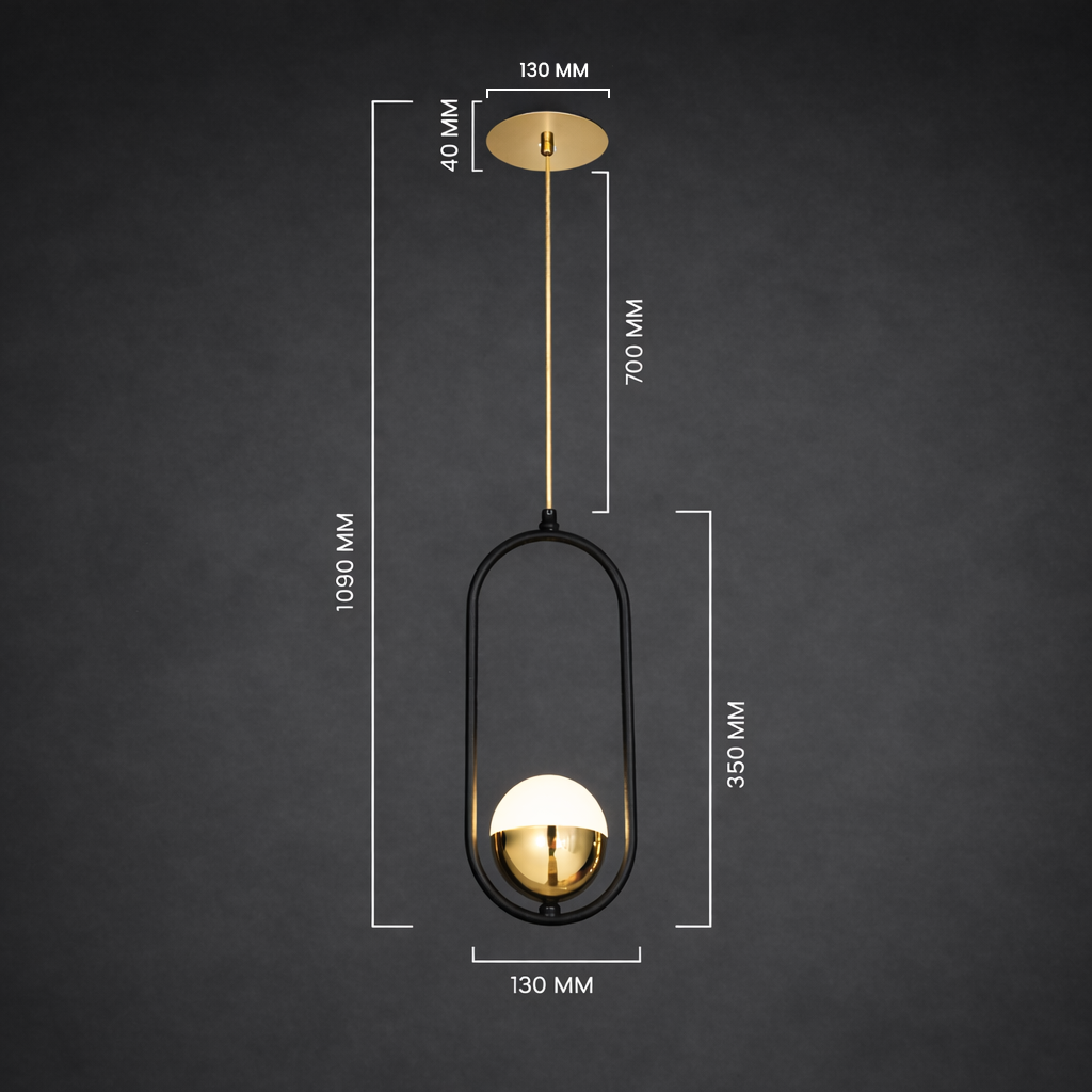 The Orbit Halo Modern Oval Pendant Light is a refined statement piece that blends architectural simplicity with contemporary elegance. Designed with a sleek elongated oval frame in matte black, this pendant suspends a glowing opal glass sphere cradled within a polished gold cup, creating a striking balance of geometry and warmth.
