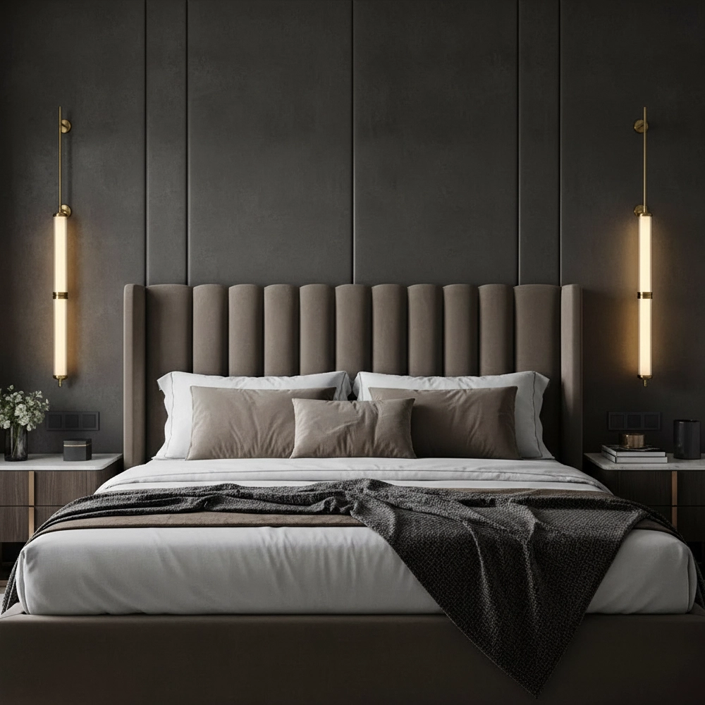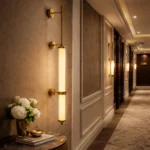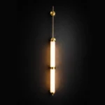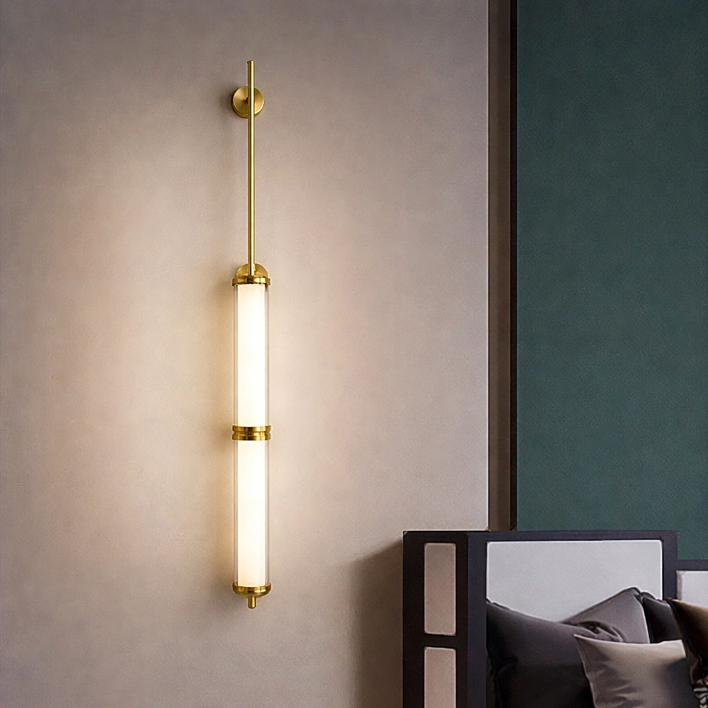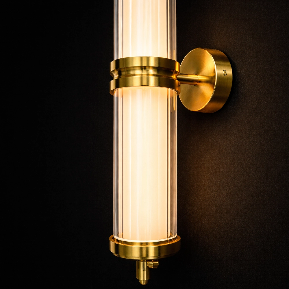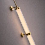 The Orion Linear Glass Tube Wall Sconce is a sleek, architectural lighting piece designed to bring refined vertical elegance to modern interiors. Featuring two illuminated glass tubes aligned along a slender brushed brass rod, this fixture creates a striking balance between minimalist design and luxurious detail.