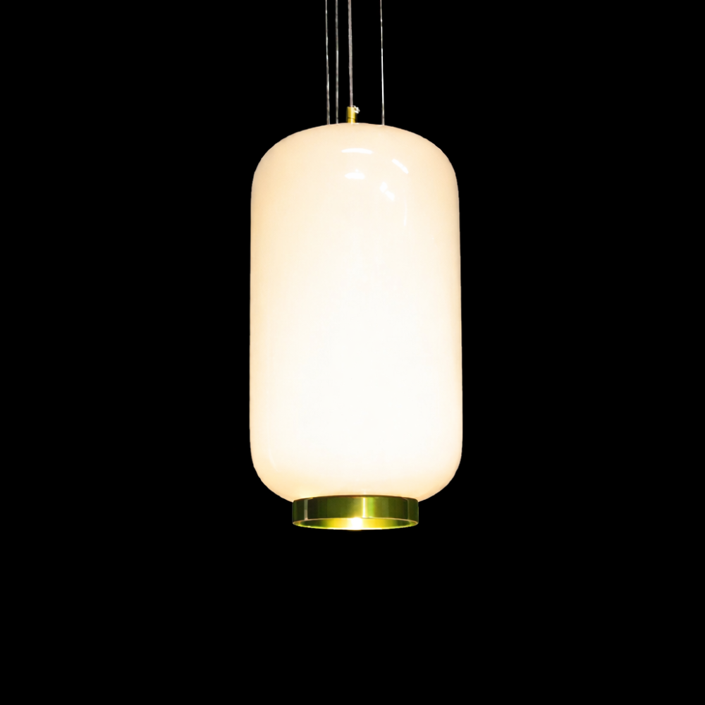 The Orvella HaloDome Pendant Light is a modern glass hanging fixture designed to deliver warm ambient illumination with refined contemporary style. Featuring a smooth rounded opal glass shade paired with a distinctive amber accent ring at the base, this designer pendant light creates a soft, welcoming glow ideal for dining rooms, kitchen islands, bedrooms, and boutique interiors.
