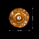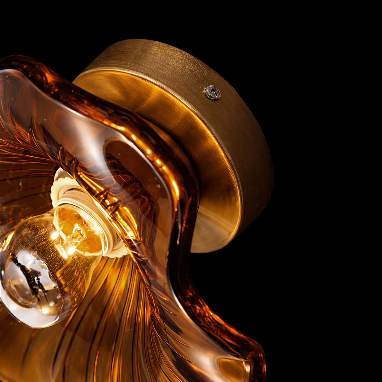 Petalia is a sculptural wall light crafted with hand-formed amber glass that blooms outward from a polished metal center. The rippled edges and radiant inner detailing diffuse light softly, creating a warm, artistic glow. Ideal for bedrooms, accent walls, and boutique interiors where lighting becomes a visual focal point.