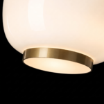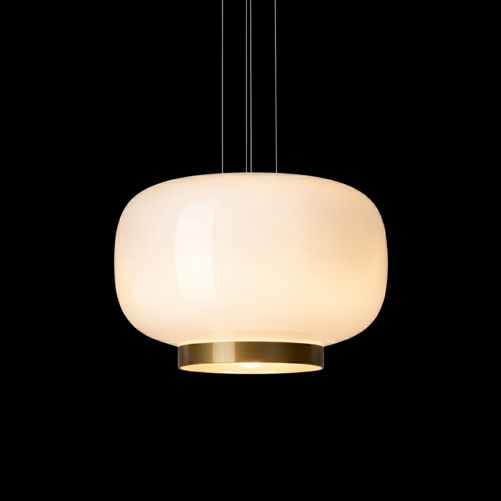 The Orvella HaloDome Pendant Light is a modern glass hanging fixture designed to deliver warm ambient illumination with refined contemporary style. Featuring a smooth rounded opal glass shade paired with a distinctive amber accent ring at the base, this designer pendant light creates a soft, welcoming glow ideal for dining rooms, kitchen islands, bedrooms, and boutique interiors.