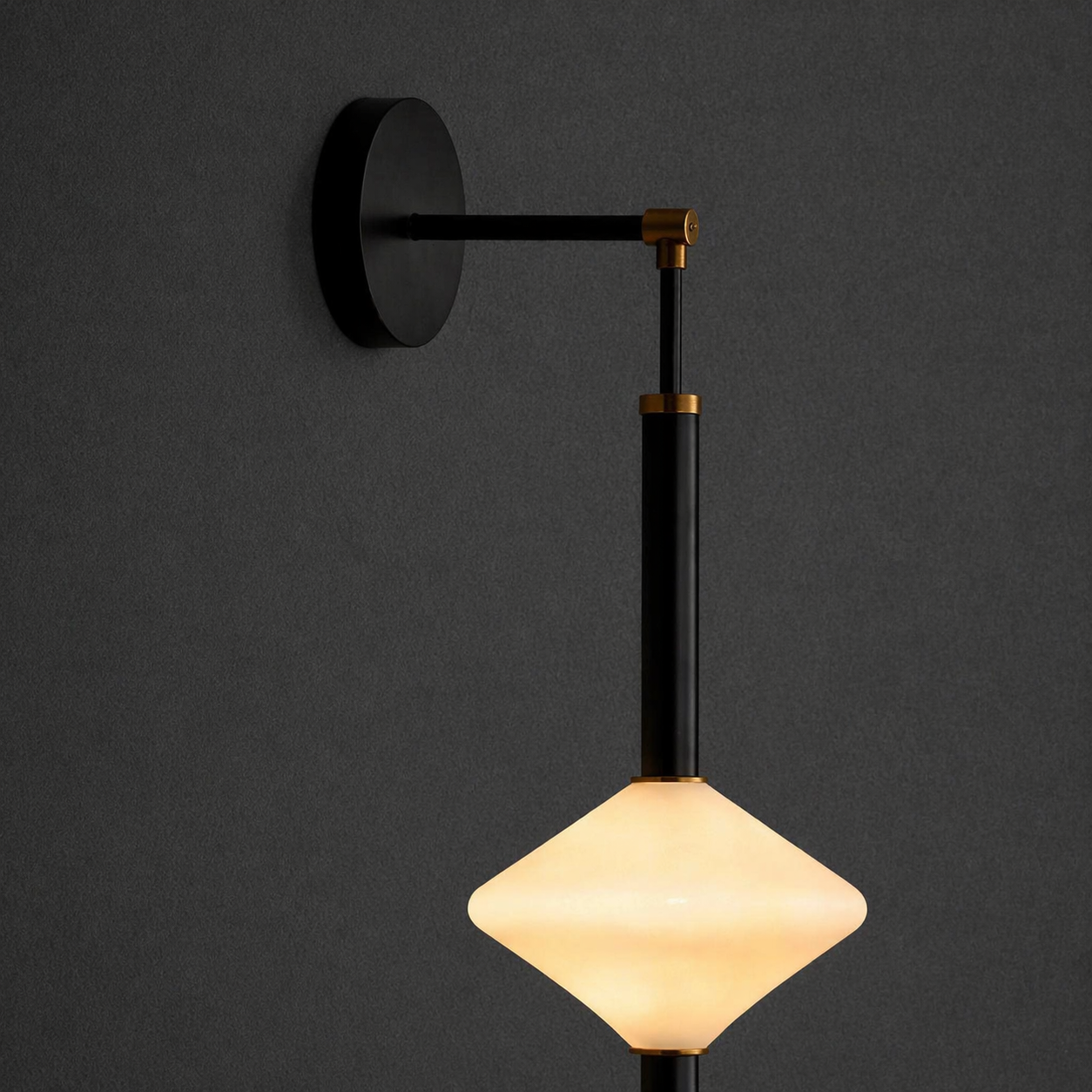 The Virello AxisLume Wall Sconce is a contemporary designer wall light crafted for modern interiors that value both function and refined aesthetics. Featuring a sleek matte black metal arm with brushed brass joint accents, this wall-mounted fixture offers adjustable positioning for targeted illumination.