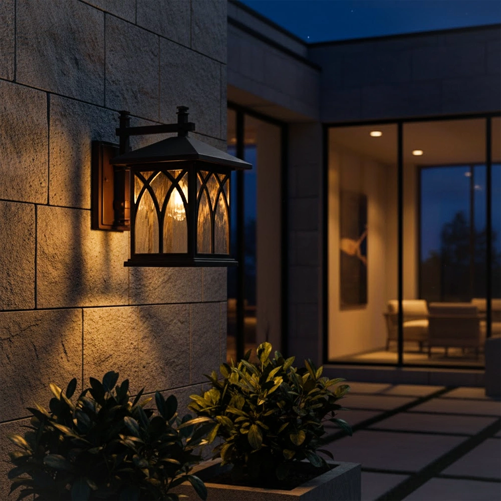 The Archway Garden Pillar Lantern Light combines a black metal body with arched window detailing and textured glass to create a warm, inviting glow around pathways and lawns. Designed to sit on boundary walls or gate pillars, it highlights landscaping while improving night-time safety for driveways, garden steps, and villa entrances. Its boxy silhouette with arch patterns gives a structured, architectural look that pairs well with modern homes, resorts, and landscaped terraces.