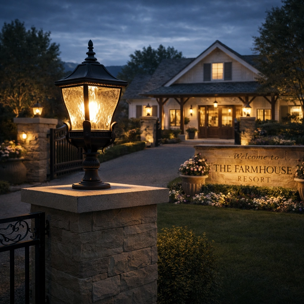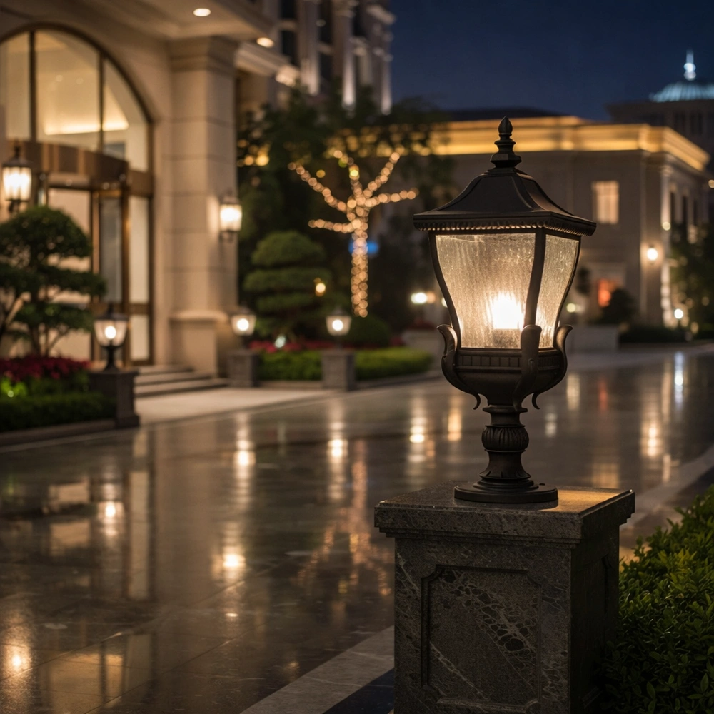 The RegalCrown Gate Pillar Lantern Light features a sculpted black frame with rippled glass panels that spread a warm, welcoming glow at the boundary wall or gate. Mounted on pillars or compound walls, it instantly elevates the entrance of villas, bungalows, and farmhouses while improving night-time visibility for visitors and vehicles. The crown-style top and flared base create a luxurious heritage look that pairs beautifully with both modern façades and classic architecture.
