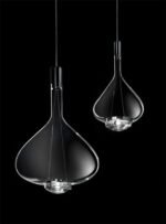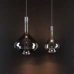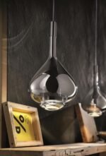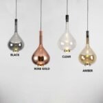 STANLEY glass pendant light in a teardrop shape come with multicolored lampshades. It combines a standalone attractive glass lampshades in a teardrop shape, which are designed in the colors amber, Grey/Black and transparent. Each borosilicate lampshade comes with a glass lampshade that surrounds the light bulb. The light is filtered through the two glass lampshades and gently enters the surrounding area, without glare. It transforms any dining table, Bedside, Couch Table into a Luxury Space.