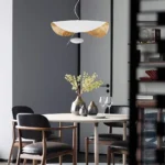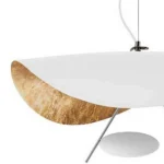 The Aura Fluctus Unique Layered Pendant Light presents a striking layered design with a smooth white exterior and a textured gold interior, creating a beautiful interplay of light and shadow. This statement ceiling fixture adds a touch of modern luxury to any room. Ideal for those seeking unique and artistic lighting that elevates their home decor.