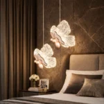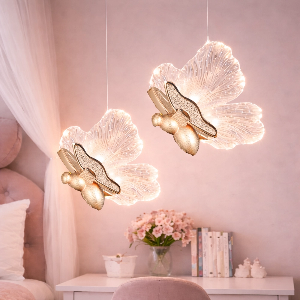 These ethereal double butterfly pendants feature intricately cut crystal wings that capture and refract light into a mesmerizing cascade of sparkles, transforming any space into a magical butterfly garden at night. Suspended gracefully above beds or dining tables, the golden accents and organic glass forms create sculptural art that doubles as ambient lighting, perfect for luxury bedrooms, boutique hotels, and artistic living spaces seeking whimsical elegance.