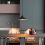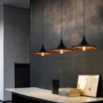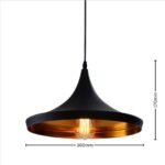 Introduce a dramatic focal point to your contemporary space with the Eclipse Core Bell-shaped Pendant Light, a stunning lighting fixture designed for captivating contrast. This modern hanging light features a bold, wide-brimmed bell-shaped shade crafted from matte black metal, creating a striking exterior. The interior reveals a radiant surprise: a lustrous copper or brushed gold finish that reflects light with extraordinary warmth, transforming ordinary illumination into a rich, inviting glow. Perfect for industrial-chic dining rooms, minimalist kitchens above islands, or adding a sophisticated edge to modern living areas. This black and copper pendant light provides ample downward illumination, ideal for task lighting or creating a cozy ambiance. Its clean lines and contrasting finishes ensure it stands out as a true statement piece. Crafted with durable materials, the Eclipse Core Bell-shaped Pendant Light is a versatile choice for homeowners seeking a powerful, design-forward lighting solution that effortlessly complements industrial, contemporary, minimalist, and loft-style interiors. Easy to install and guaranteed to enhance any modern home.