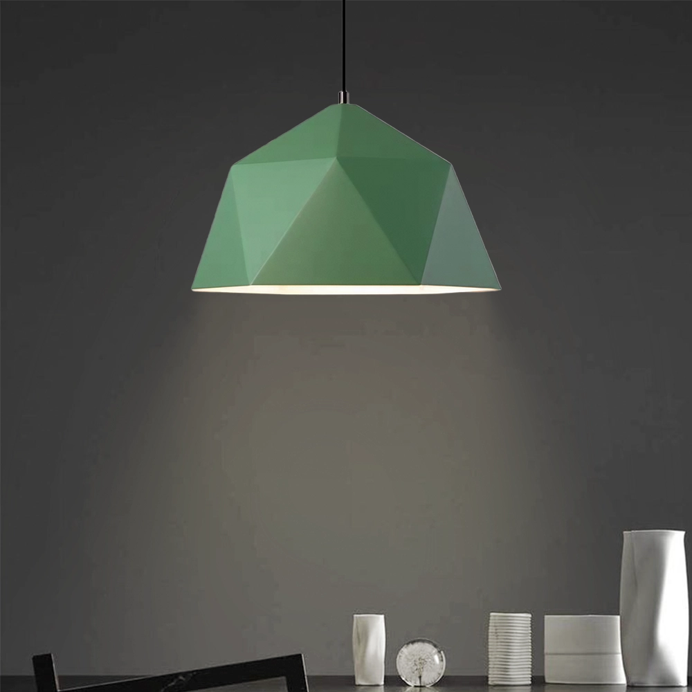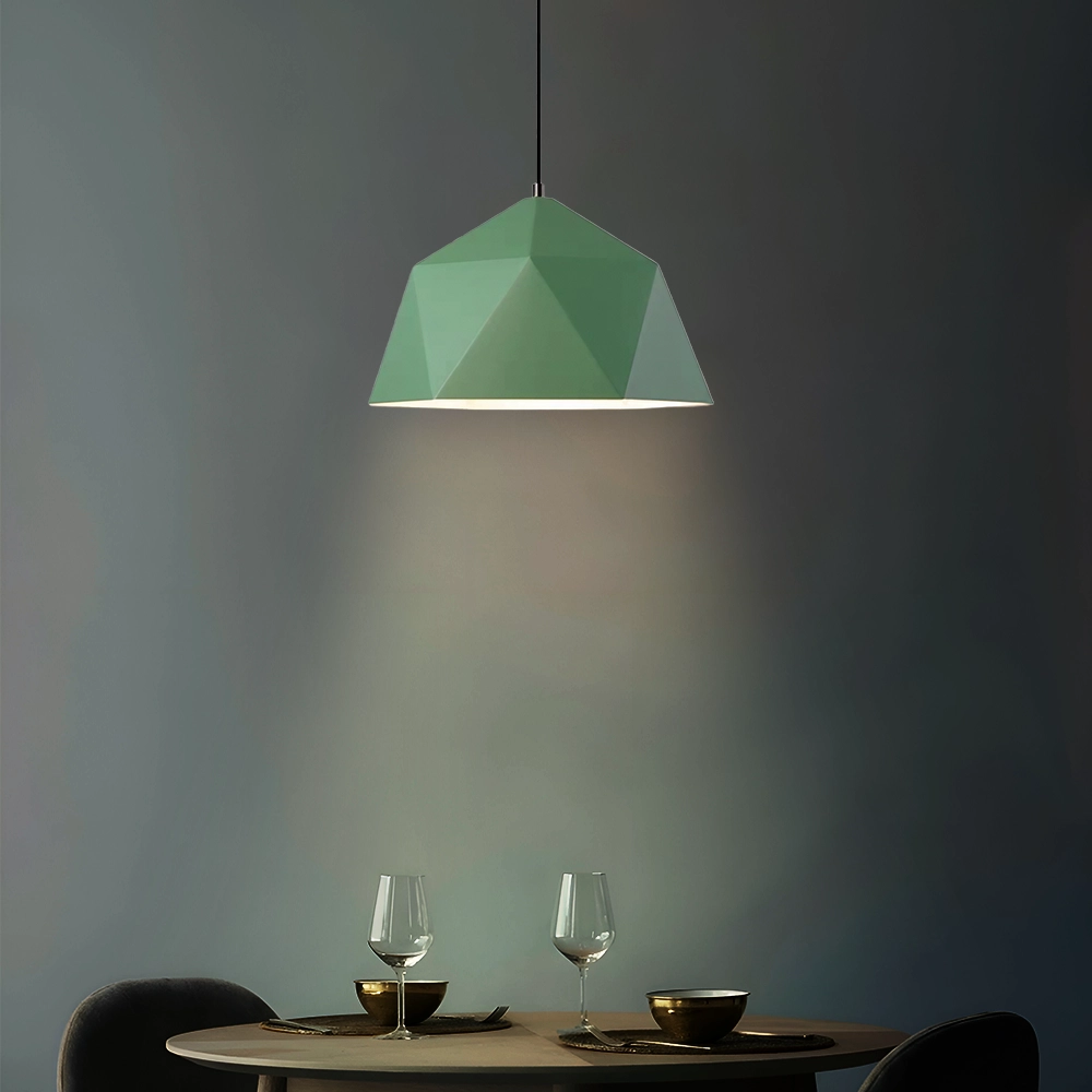 Introduce contemporary flair and a refreshing pop of color with the GeoMint Modern Geometric Polygonal Pendant Lamp, a truly striking lighting fixture for the discerning designer. This unique hanging light features a bold, geometric shade composed of multiple flat facets, creating a captivating polygonal silhouette. Finished in a sophisticated matte mint green or sage green hue, it offers a serene yet vibrant aesthetic that stands out in any room. Perfect for illuminating kitchen islands, adding an artistic touch above dining tables, or serving as a chic focal point in minimalist living rooms and bedrooms. This faceted green pendant light provides directed, ambient illumination, ideal for modern spaces. Its crisp lines and unconventional form make it a conversation starter. Crafted with durable materials, the GeoMint Modern Geometric Polygonal Pendant Lamp is a versatile choice for homeowners seeking a statement piece that complements mid-century modern, Scandinavian, contemporary, and industrial-chic decor styles. Easy to install and designed to bring both brilliant light and unparalleled stylistic charm to your interior.