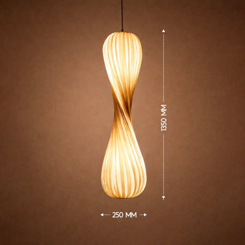 Helix Glow is a statement pendant light featuring a fluid, twisted silhouette that gently diffuses warm light through its ribbed form. The seamless spiral design creates a sense of motion and elegance, making it ideal for double-height spaces, stairwells, and contemporary interiors where lighting becomes a visual centerpiece.