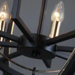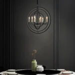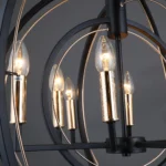 Introduce a touch of vintage industrial charm with the Iron Armillary Sphere pendant light, a distinctive fixture that combines historical inspiration with modern design. This eye-catching chandelier features a series of intersecting dark iron or black metal rings, reminiscent of an armillary sphere, creating a visually compelling three-dimensional form. Six (or more) warm gold-colored bulb holders are strategically placed to provide a balanced and inviting illumination. Perfect for adding character to dining rooms, libraries, or living spaces with industrial, farmhouse, or transitional decor, this black iron ring chandelier serves as both a functional light source and a unique decorative element. Its open and airy design allows for a generous spread of light and showcases the beauty of exposed bulbs. Crafted from robust metal with a dark finish, the Iron Armillary Sphere chandelier is a durable and stylish choice for those seeking a statement piece with a touch of historical intrigue and modern sensibility.