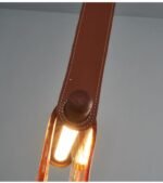 Add an irresistible ambiance with the contemporary Musi Pendant. The modern design allows for an open concept while offering a unique look. Providing amble light through glass allowing for a soft output through while it hangs with a leather belt stlyling to best compliment your space. Its unique design is set to give your space a modern looks. An asymmetrical silhouette displays a distinctly new shape and, when lit, the piece creates an atmospheric effect through its glass hanged in the wooden Base. Its perfect to use as a clutter on your living, bedside table or in your dinning space.