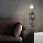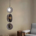 Discover the enchanting Lunar Disc Modern Fluted Glass Pendant Light. This unique modern pendant light showcases three translucent, intricately fluted glass “discs” arranged vertically, creating a captivating visual flow. Ideal for adding a touch of sophistication to high-ceiling entryways, living rooms, or above a dining table, it provides stunning ambient illumination. This contemporary glass light is a true conversation starter, perfect for those seeking bespoke and visually dynamic lighting.