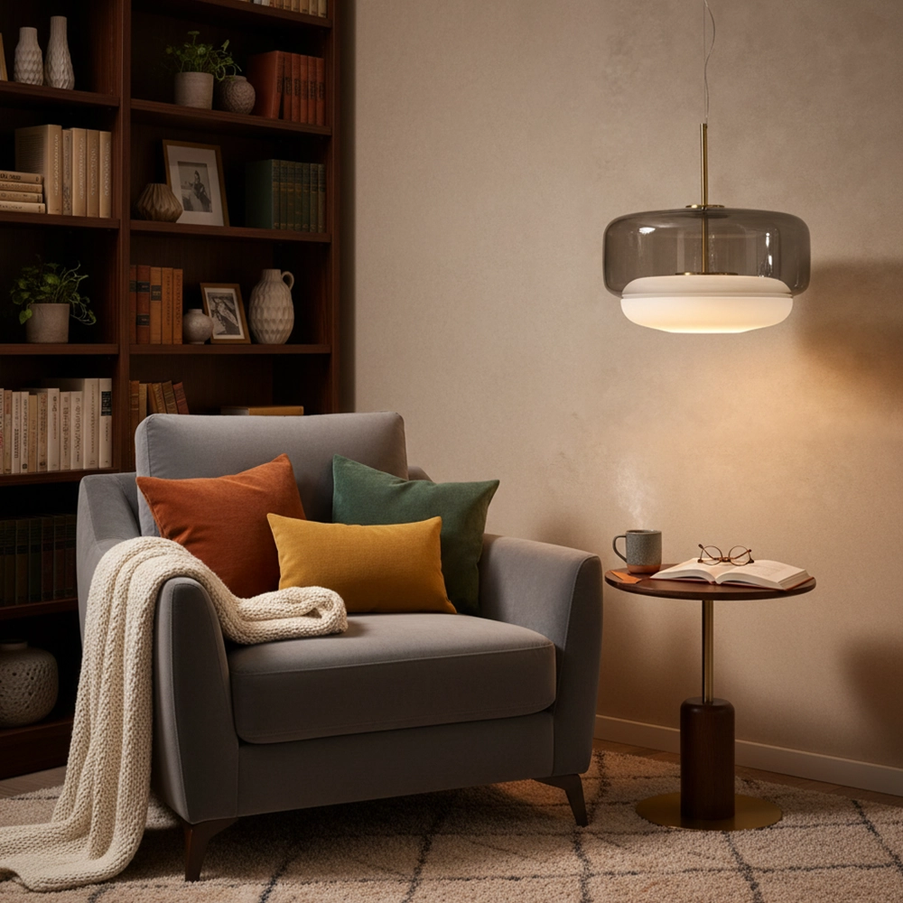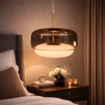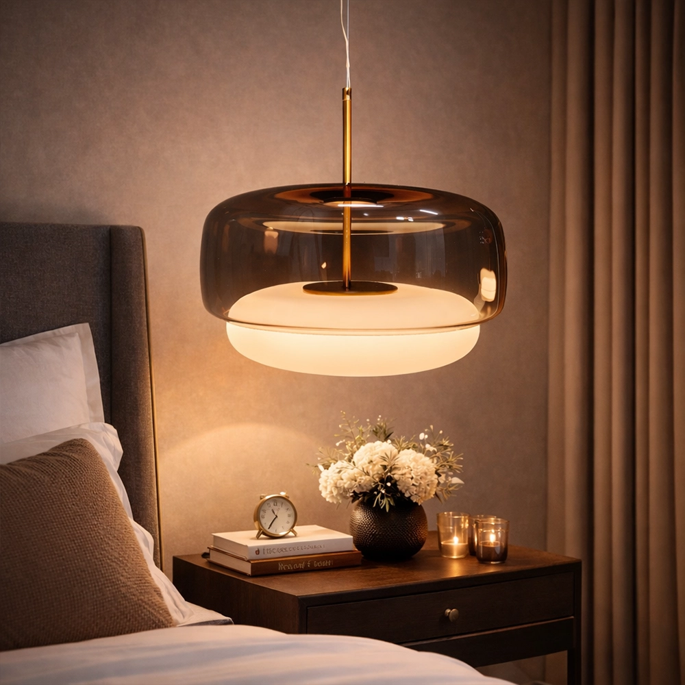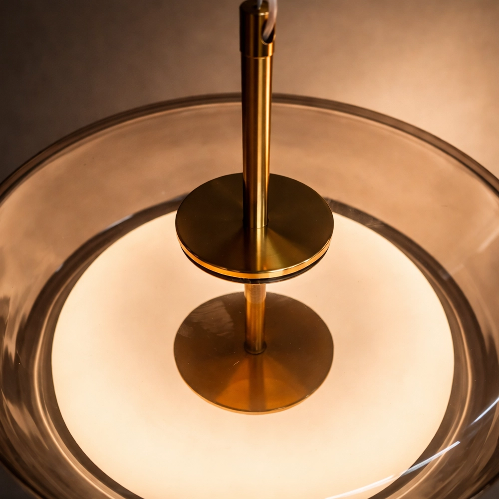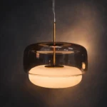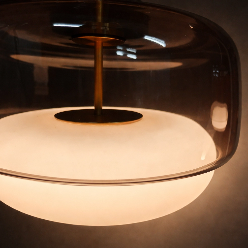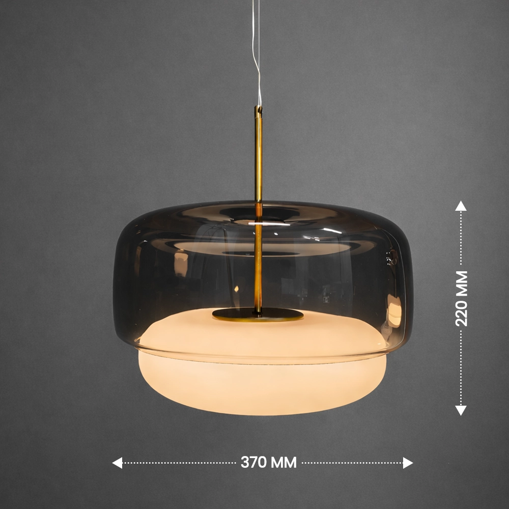 The Noctelle Aurevia Halo Glass Pendant Light is a modern luxury hanging light fixture designed to bring refined elegance and warm ambient illumination to contemporary interiors. Featuring a wide smoked glass dome paired with a softly glowing frosted inner diffuser, this designer pendant light creates a layered lighting effect that is both dramatic and inviting.