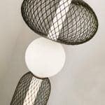 Spherical Grid Lamp is a contemporary table lamp featuring a spherical glowing orb nestled between two sleek, grid-patterned mesh frames. The light radiates softly through the mesh, creating a striking interplay of shadows and illumination. With its modern aesthetic and balanced design, the Spherical Grid Lamp adds a touch of elegance and visual interest to any space.