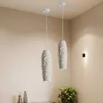 Introduce a touch of serene sophistication with the Stratum Glow Minimalist White Pendant Light, a sleek yet visually rich lighting fixture. This striking pendant features a long, slender cylindrical body made of white resin, meticulously adorned with a layered, contoured texture that adds depth and organic appeal. Suspended gracefully from a slender silver-finished rod and canopy, it emits a soft, even light that enhances any modern environment. Perfect for creating a calming atmosphere in bedrooms, providing focused illumination over kitchen counters (when grouped), or serving as an elegant vertical accent in entryways. This white textured resin pendant embodies refined simplicity and contemporary design. Its durable construction ensures longevity, while the unique surface texture creates subtle visual interest, making it more than just a light source. The Stratum Glow is an excellent choice for those who value clean lines, innovative materials, and a lighting solution that offers both functional brilliance and understated artistic flair, seamlessly complementing minimalist, Scandinavian, and modern transitional decor.