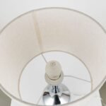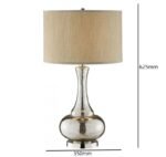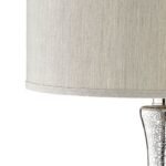 This table lamp embodies the essence of sophistication and style. Its stunning silvery-tone glass base adds a touch of glamour to any room, while its elegant fabric shade creates a warm, inviting ambiance. The lamp’s design seamlessly blends together classic and contemporary elements, making it a versatile piece that will complement space. The attention to detail in its construction and its blend of affordability and durability make this lamp a prime example of artistry and design. Whether placed in a living room, bedroom or home office, this table lamp will be a standout piece that brings divine design to your space.