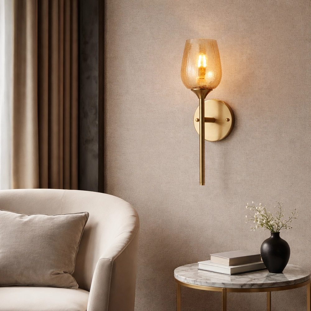 Textured glass goblet blooms molten amber warmth atop a slender brass stem, channeling eternal flame like alchemist’s elixir forged in gilded ritual chalice. This sorcerous beacon crowns velvet vanities, apothecary alcoves, and clandestine wine crypts where liquid light whispers forbidden vintages.