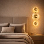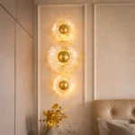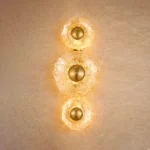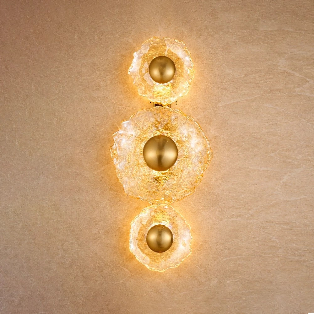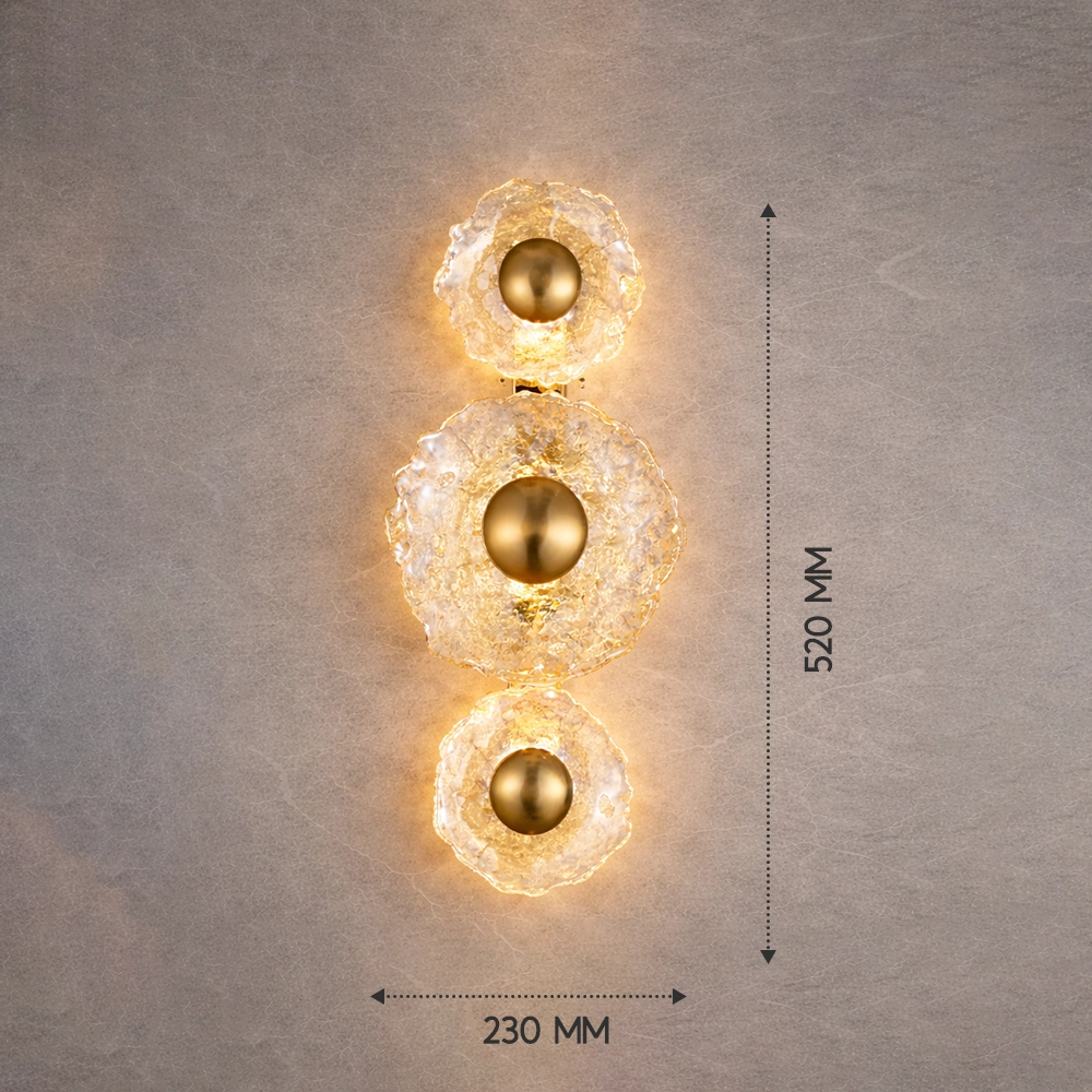 Three jagged quartz geodes cradle radiant gold nuclei, exploding ambient light through crystalline fissures like unearthed aurora pockets suspended in vertical constellation. This primal relic trio illuminates powder suites, cavernous lobbies, and crystal collector vaults where raw earth magic pulses with otherworldly fire.