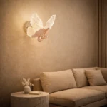 This sculptural wall light captures a mythical moth in mid-flight with faceted crystal wings that shimmer like captured moonlight, perched on a rose-gold textured body adorned with pearl-like accents. The organic asymmetry and radiant glow create living art for gallery walls, powder rooms, or boudoir nooks where conventional lighting simply won’t do.