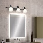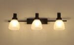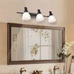 Breakwater Bay Featuring frosted glass shades, this three-light and two-light fixture brightens up your abode and provides proper task-lighting. Its steel circular backplate and curved arms bring the charm of a modern farmhouse to your aesthetic. It offers style and versatility above any mirror. The Vanity light with its Black Matte finished gives your washroom a perfect look and finish boosting a unique charming look. The round design of the glass is both charming and modern, making it a piece to treasure.